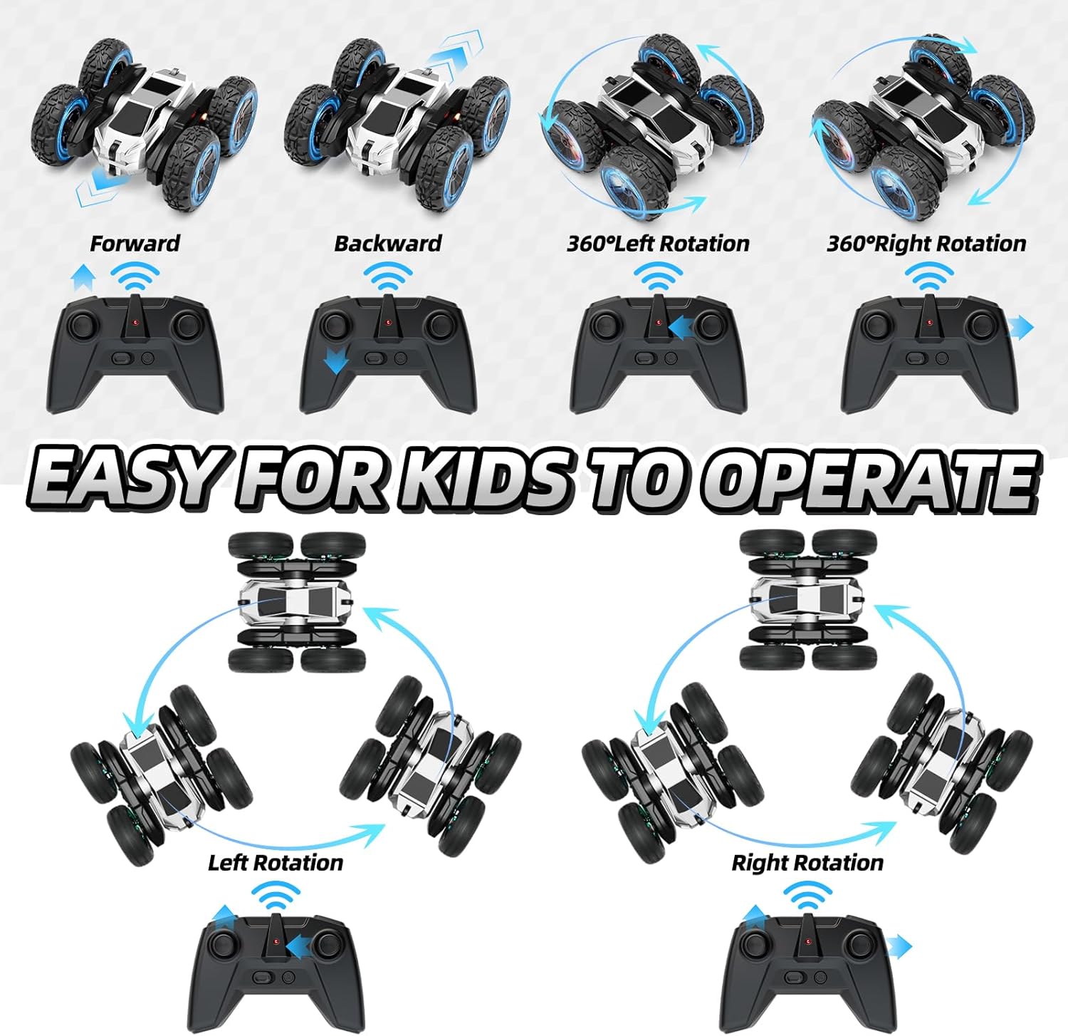 Fácil de jugar para niños: este auto a control remoto está diseñado con un simple control remoto que hace que realizar acrobacias geniales sin esfuerzo, incluso para niños más pequeños.