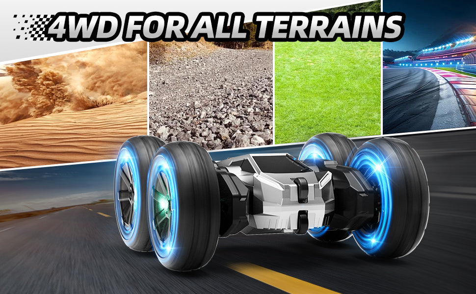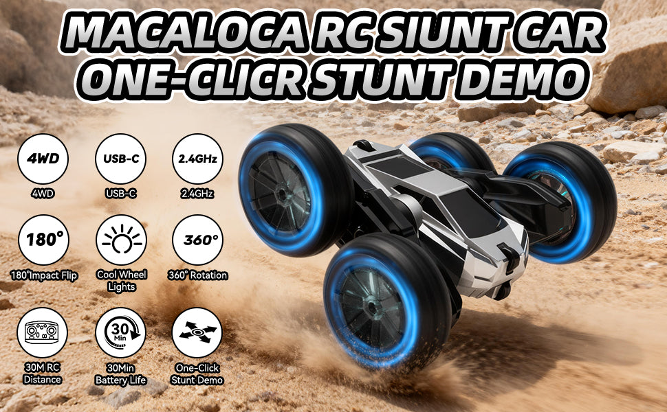 Este auto de control remoto puede ofrecer giros de 360°, giros de colisión de 180° y tener un modo de demostración de un solo clic, los niños pueden jugar fácilmente trucos emocionantes.