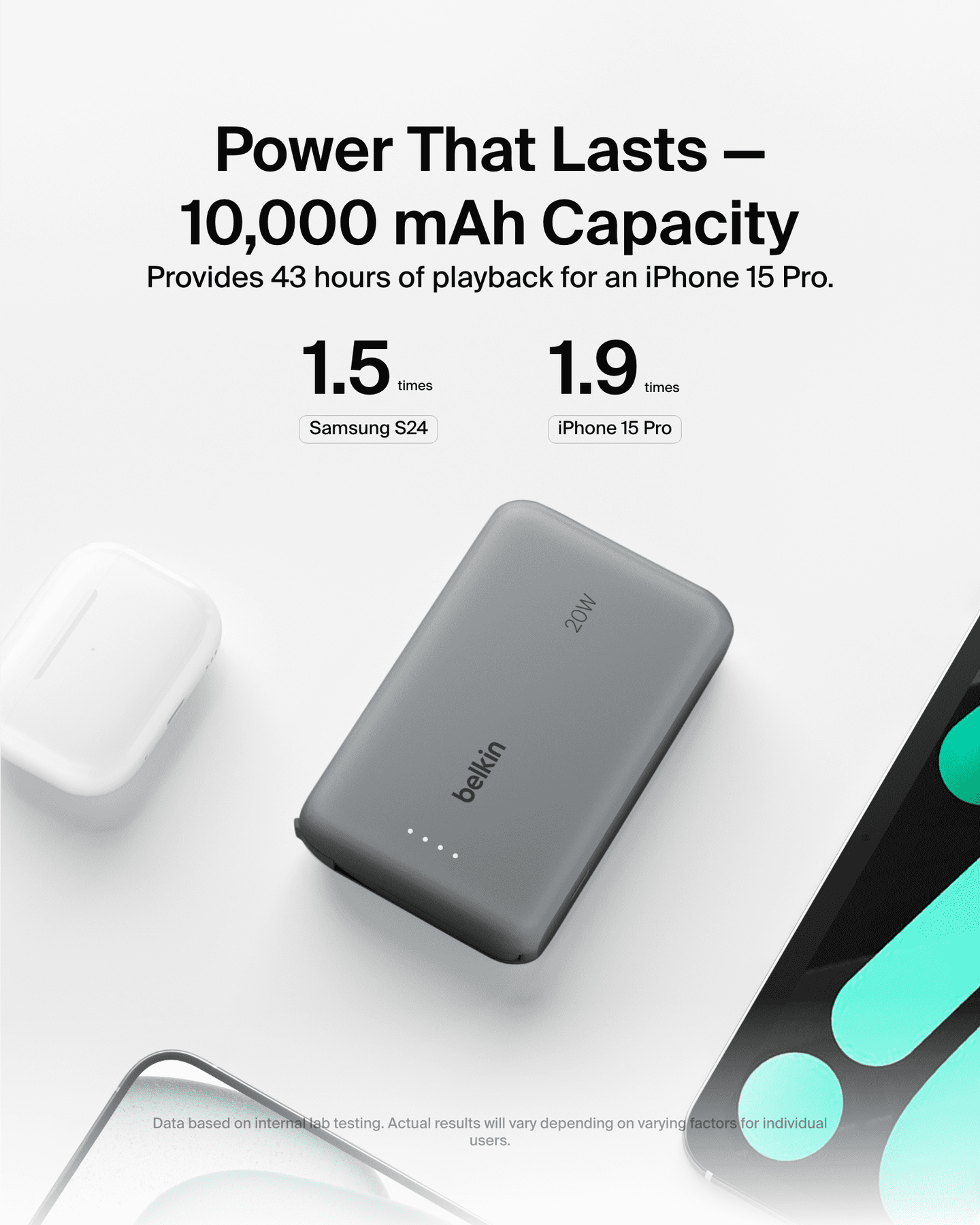- SMARTPHONES & TABLETS: Este cargador portátil Belkin tiene una potente salida de 20W, lo que le permite cargar rápidamente sus teléfonos inteligentes y tabletas. Disfruta de tiempos de carga más rápidos para garantizar que tus dispositivos estén listos cuando los necesites