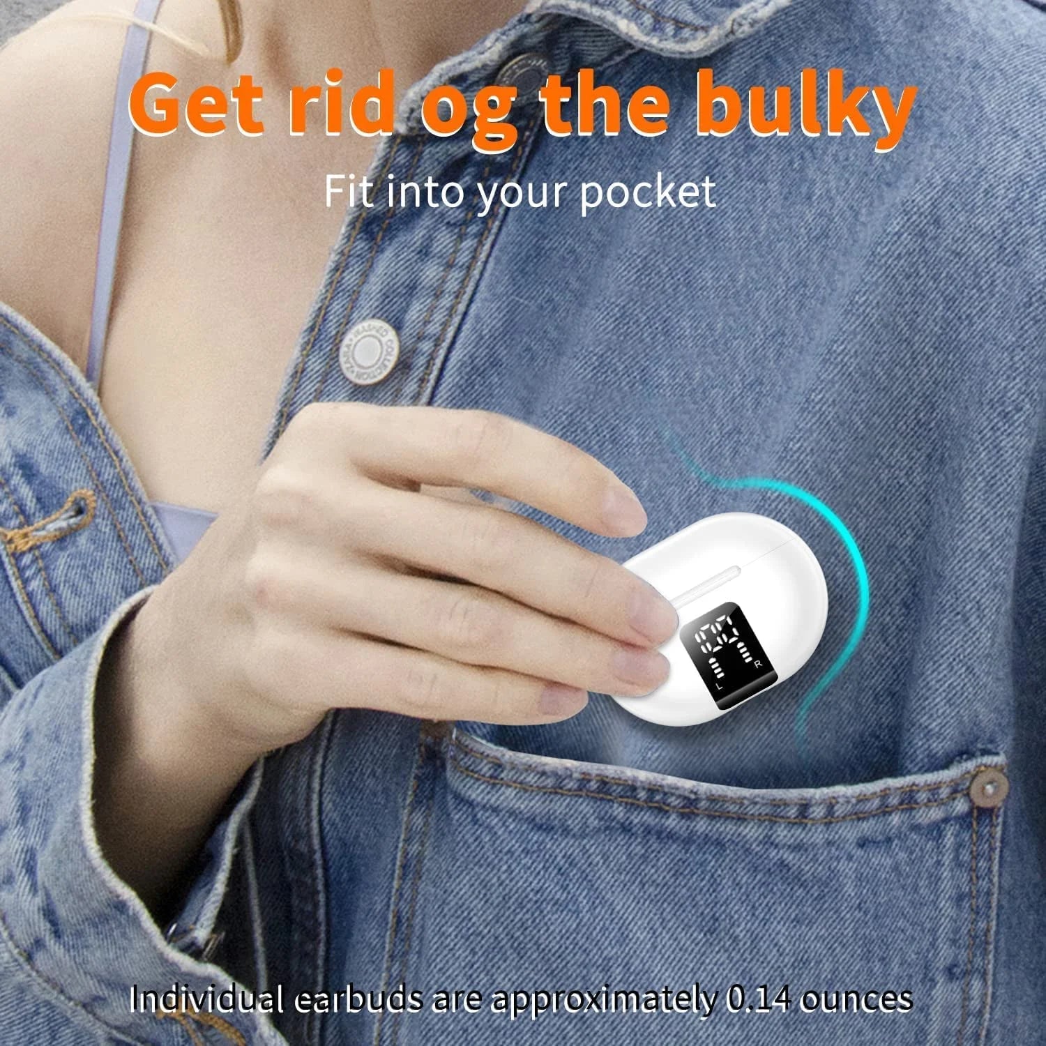 - Ajuste Cómodo y Fácil de Llevar: Los auriculares están diseñados ergonómicamente y vienen con 3 tamaños diferentes de almohadillas suaves que se adaptan al 99% de los contornos del canal auditivo. Cuando uses los auriculares, serán muy cómodos y no se caerán fácilmente. Puedes usarlos en muchos escenarios, como correr, caminar, trabajar, etc. Cada auricular pesa solo 0.008 libras y el estuche de carga solo 0.07 libras, lo que facilita su colocación en tu bolsillo o mochila. El material del estuche es suave y fácil de limpiar.