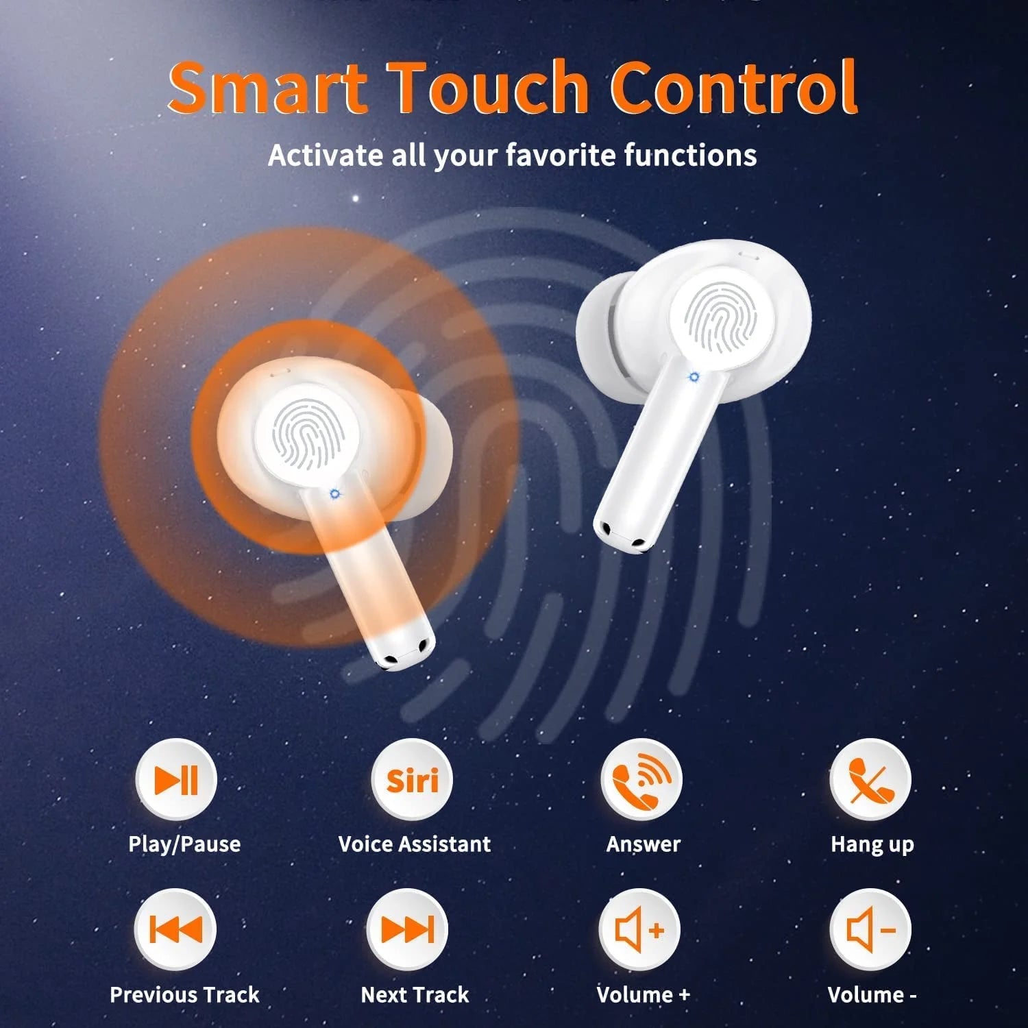 Auriculares Bluetooth Inalámbricos con Micrófono y Control Táctil, IPX7 Impermeables, Auriculares Estéreo de Alta Fidelidad para Deportes y Trabajo, Compatibles con iPhone 13 Pro Max