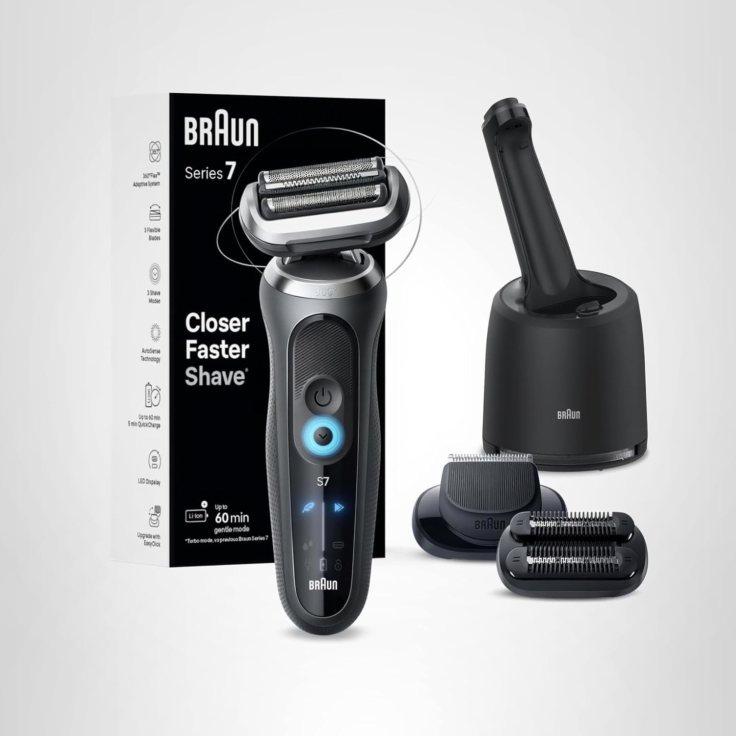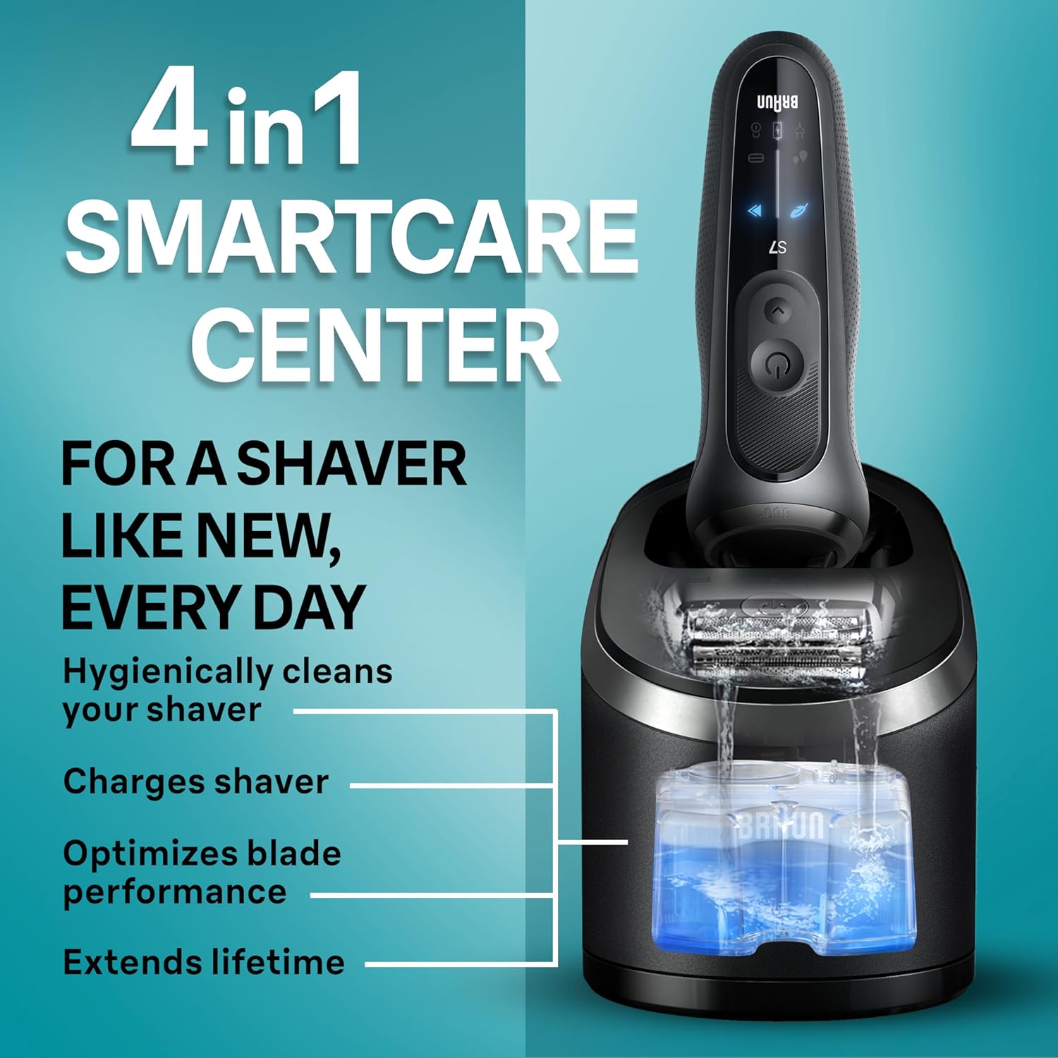 Braun Afeitadora eléctrica para hombre, serie 7 7185cc, impermeable, afeitado húmedo y seco, kit de afeitado con centro SmartCare y recortadora de barba, 3 modos de afeitado, tiempo de funcionamiento