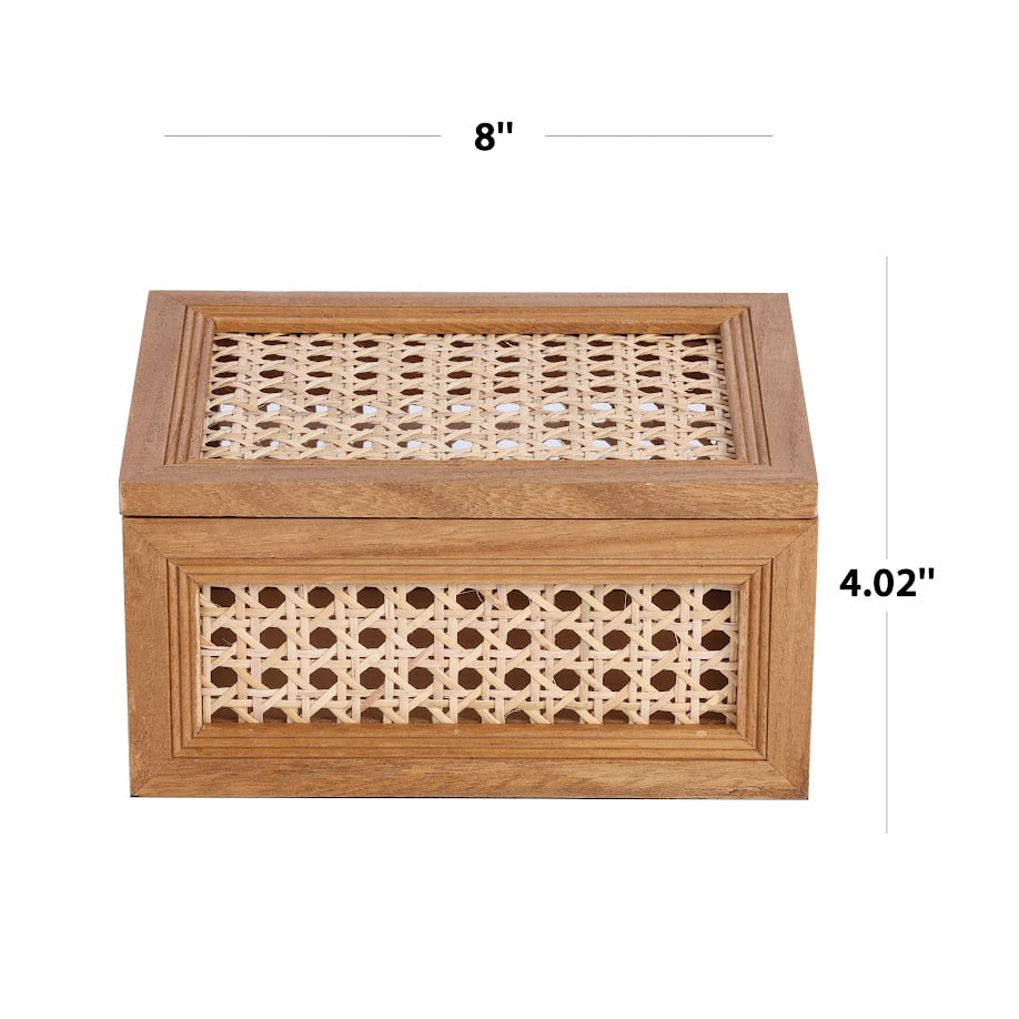 ¡Mejora tu espacio de vida con esta elegante caja de ratán! ¡La caja de ratán bellamente hecha a mano está hecha a mano de ratán natural! Con dimensiones totales de 4.02 x 8. 6", esta encantadora caja de ratán es el accesorio decorativo perfecto, lo que le permite almacenar elegantemente artículos pequeños y baratijas! Muestre esto encima de su mesa de café para recoger hallazgos especiales, o curar una esquina de café en el mostrador de su cocina para guardar con estilo sus cápsulas de café! ¡Las posibilidades decorativas son infinitas con esta pieza de calidad! ¡La hermosa caja de ratán también es el regalo perfecto para el anfitrión o la inauguración de la casa! La tapa de vidrio ofrece un adorno adicional al impresionante diseño de esta caja decorativa. ¡Haga la caja de ratán suya hoy y disfrute de todas las oportunidades de estilo que esta caja decorativa, pero organizativa, tiene para ofrecerle en su propia casa!