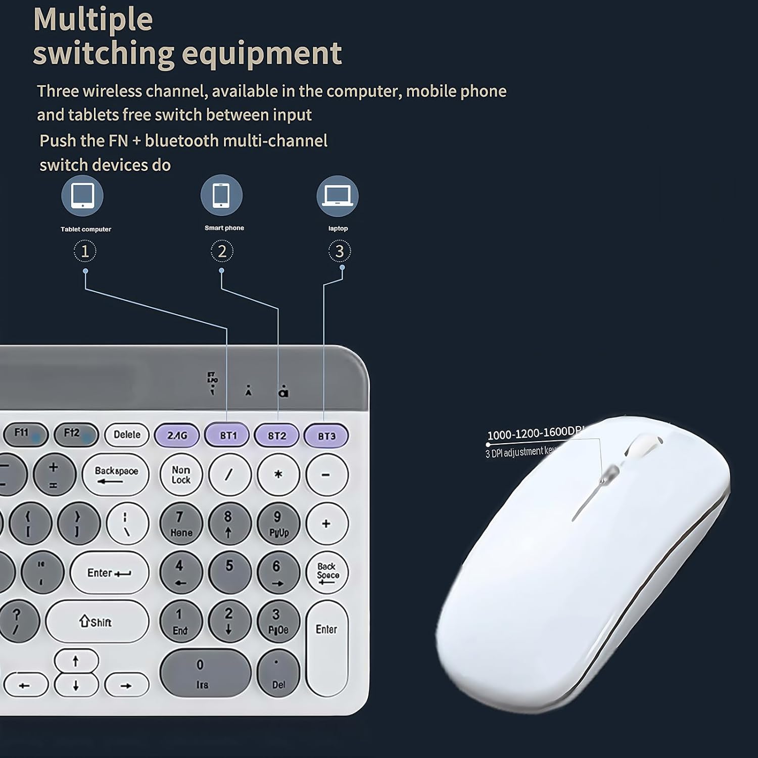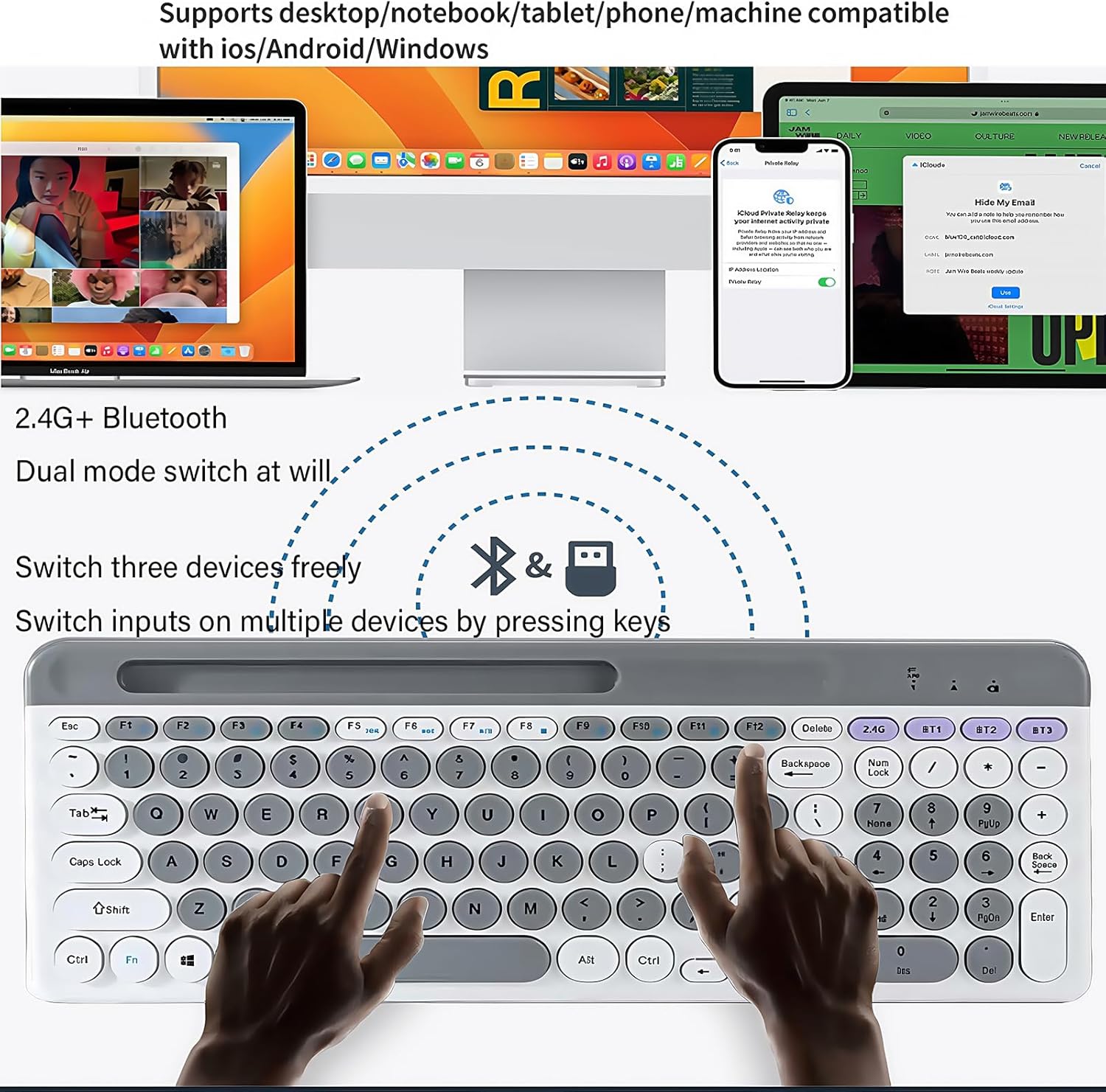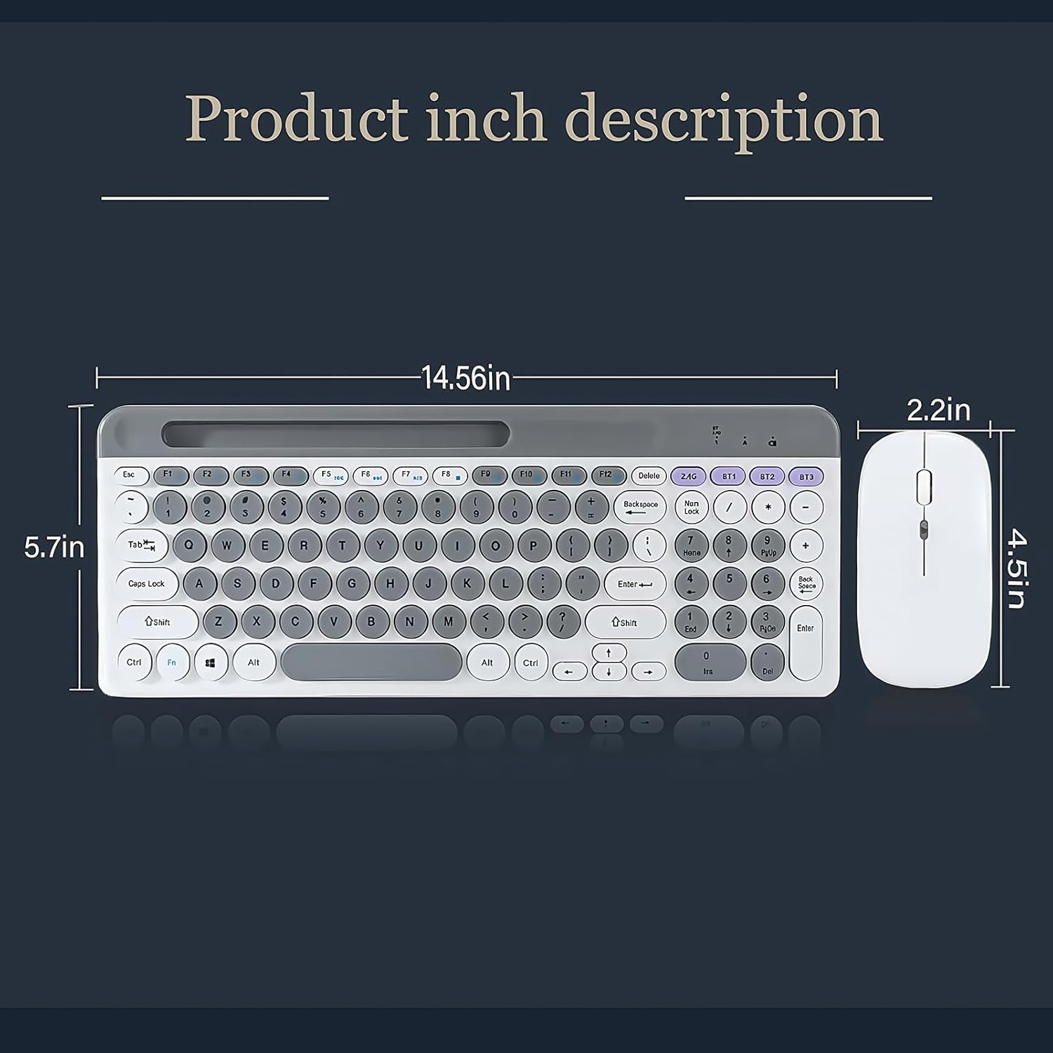 Combo de teclado y mouse inalámbricos con soporte para tableta de teléfono, modo dual recargable (Bluetooth 5.0 y 3.0 + 2.4G) mouse silencioso multidispositivo para Windows, iPad, tableta, MacOS, iOS