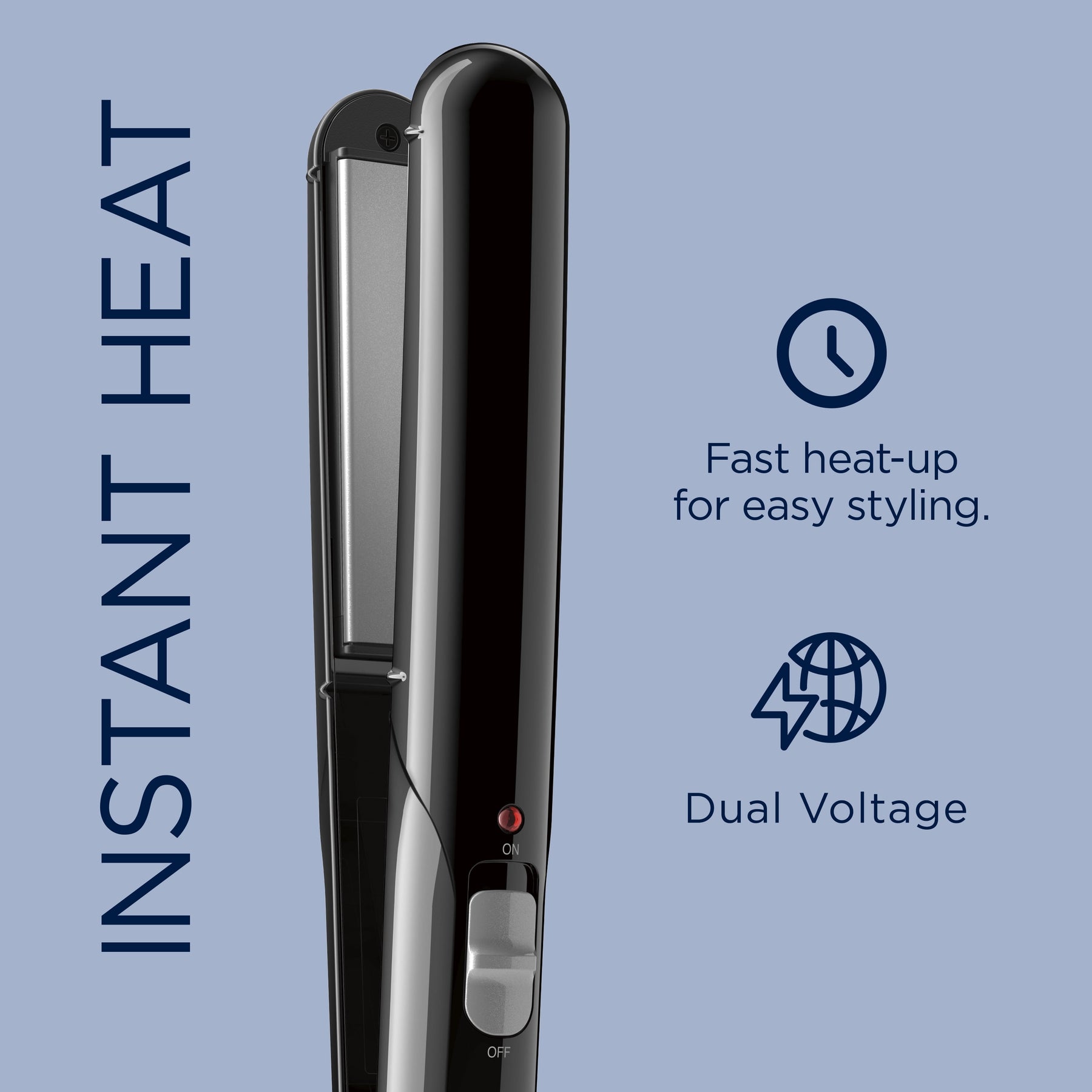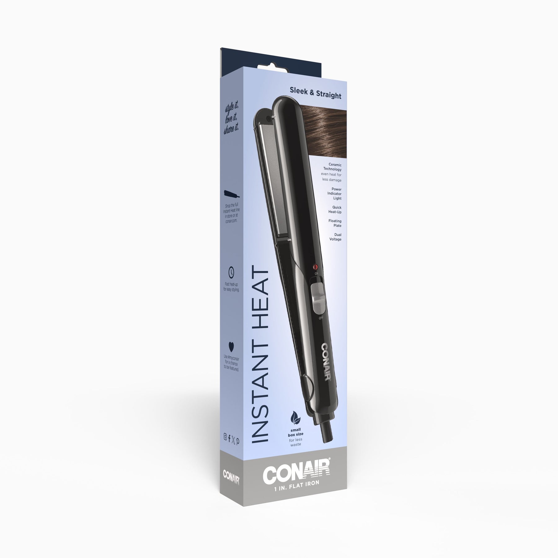 The Conair Instant Heat 1" Ceramic Flat Iron Hair Straightener creates shiny, straight hair in no time. Designed with 1-inch ceramic-coated plates, it offers even heat distribution for smooth, shiny hair. The floating plates adjust for better contact with hair, ensuring an easy glide for a perfectly straight finish. Thin plates get close to the roots, giving you ultimate styling precision. Perfect for all hair types, the flat iron helps you style in a flash, making it ideal for busy mornings. The easy-to-use ON/OFF switch and indicator light make it simple to control, and its dual-voltage capability automatically adapts for worldwide use, so you can take it on any trip without worry. Plus, the tangle-free cord offers maximum maneuverability, making styling easier than ever.