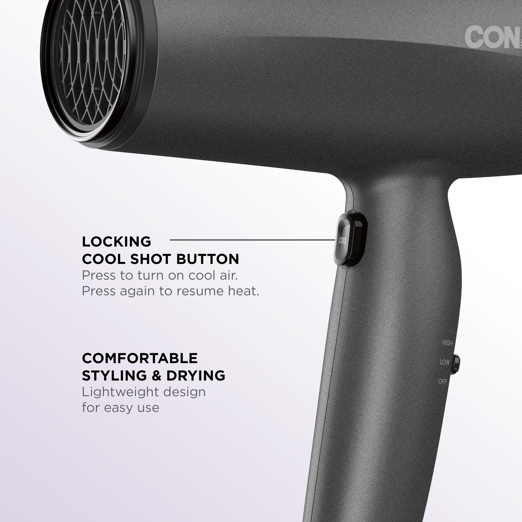 Con el secador de pelo Conair Radiance Boost consigue sin esfuerzo resultados de calidad en el salón. Aprovechando la tecnología nano-cuarzo, este secador de pelo avanzado ayuda a suavizar el encrespamiento, mejorar el brillo y deja el cabello irresistiblemente sedoso. El potente motor seca el cabello rápidamente, mientras que la tecnología cerámica proporciona un calor uniforme y suave. Este secador de Conair permite un estilo personalizado con 3 ajustes de calor y 2 velocidades, junto con un concentrador para acabados elegantes y un difusor para mejorar las olas naturales. El botón de disparo fresco de bloqueo proporciona una ráfaga de aire fresco para establecer su estilo. Haga clic en el botón de disparo fresco de nuevo para volver a la configuración de calor. Ya sea que busques un aspecto elegante y pulido o para resaltar la textura de tus rizos naturales, esta secadora garantiza un rendimiento óptimo. Transforme su rutina diaria en una experiencia de estilo de lujo.