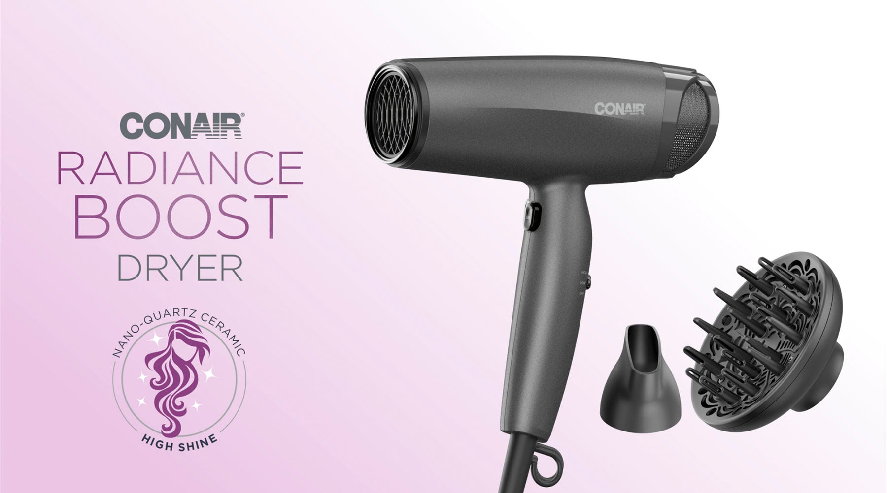 Conair Radiance Boost Secador de Pelo Tecnología de Nanocuarzo, Incluye Difusor y Concentrador