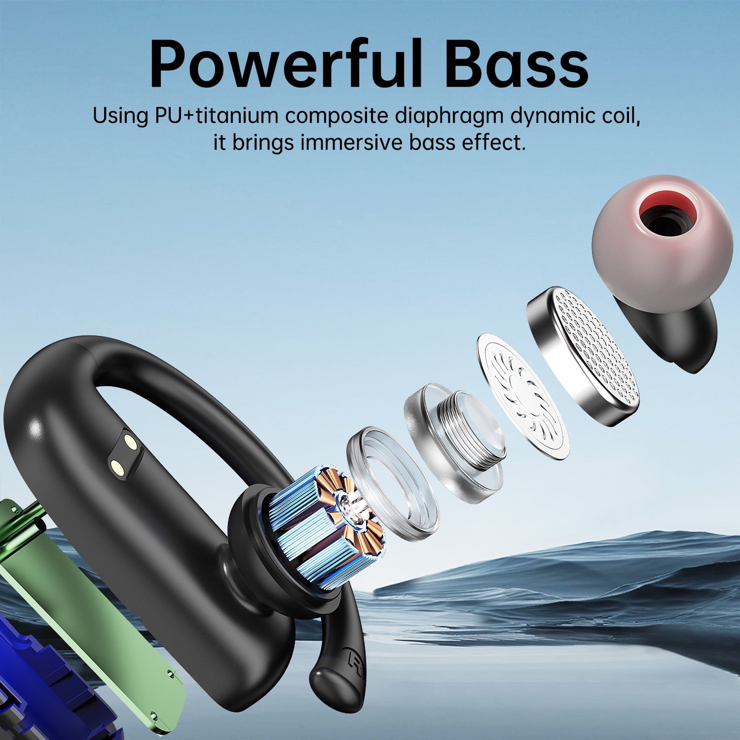 Los auriculares están diseñados ergonómicamente, son ligeros, cómodos de llevar y no son fáciles de caer, proporcionando una experiencia auditiva larga y cómoda incluso durante el ejercicio extenuante.