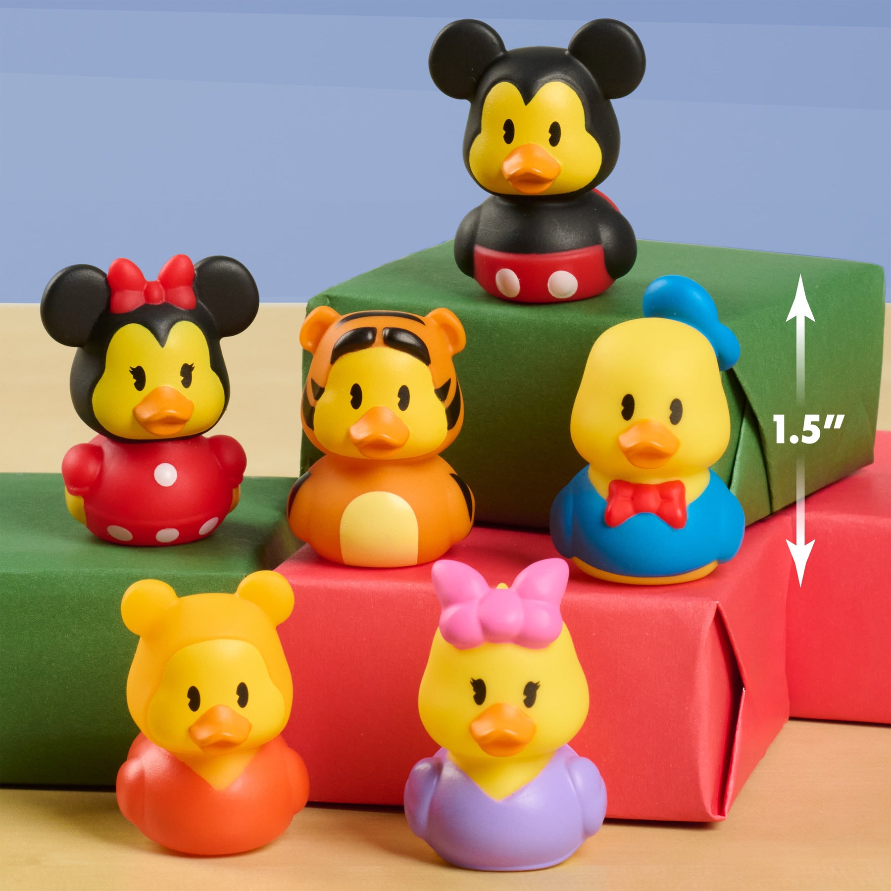 - Officially Licensed Disney Toys by Just Play: This whimsical collection of ducks will look great in a powder room or on a collector’s shelf. They’ll make fantastic party favors, stocking stuffers, and surprise gifts for fans of Disney films.