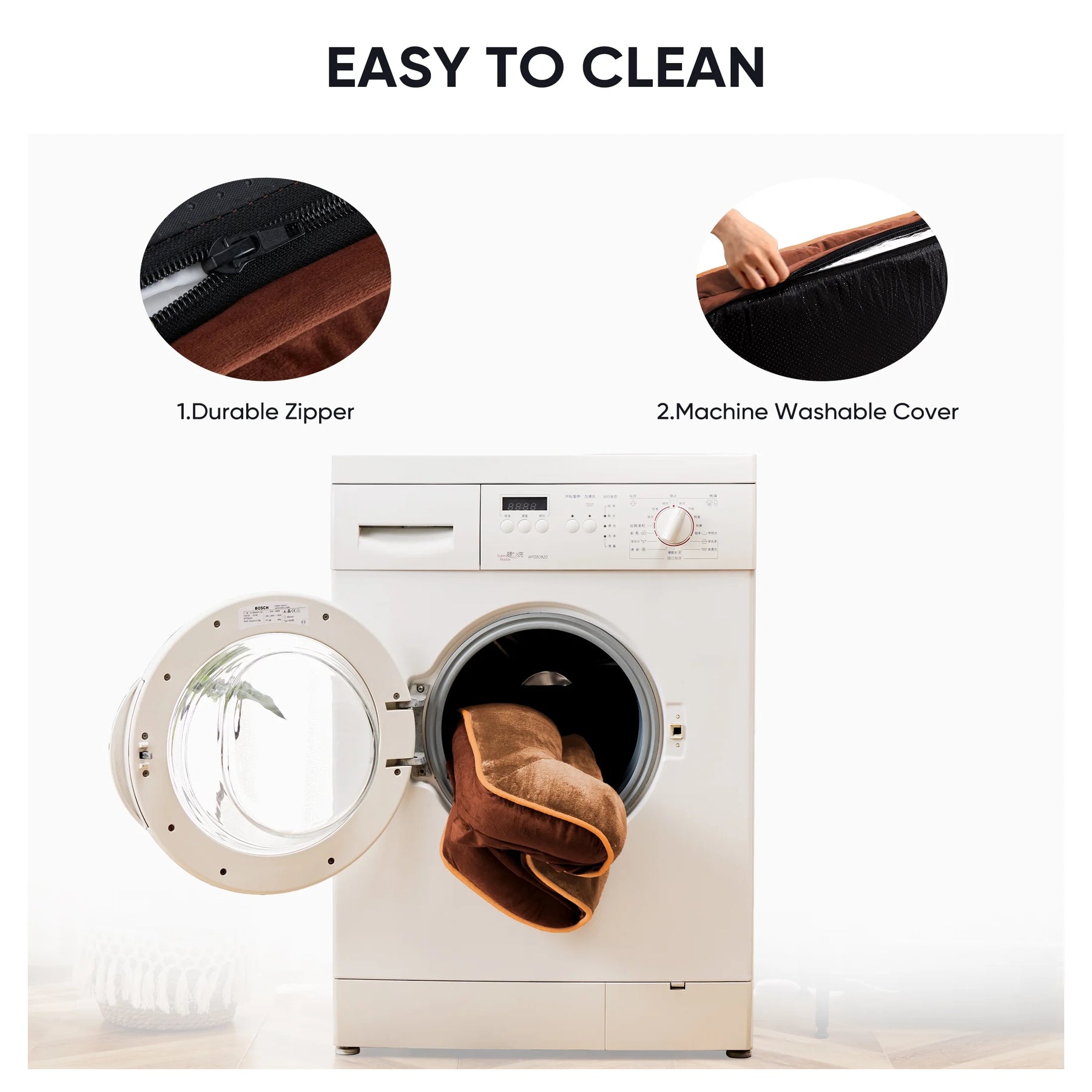- 5. FÁCIL DE LIMPIAR---Con nuestro diseño lavable a máquina, solo tienes que meter la funda de la cama para mascotas en la lavadora para eliminar la suciedad, olores y pelo de mascotas, asegurando que el lugar de descanso de tu mascota esté limpio y sanitario.