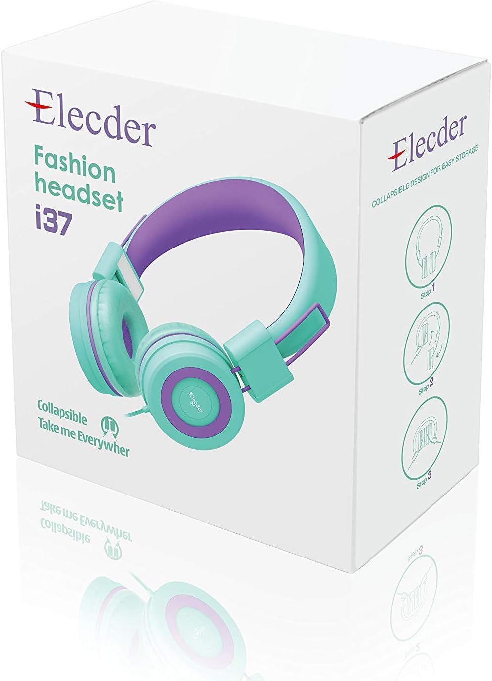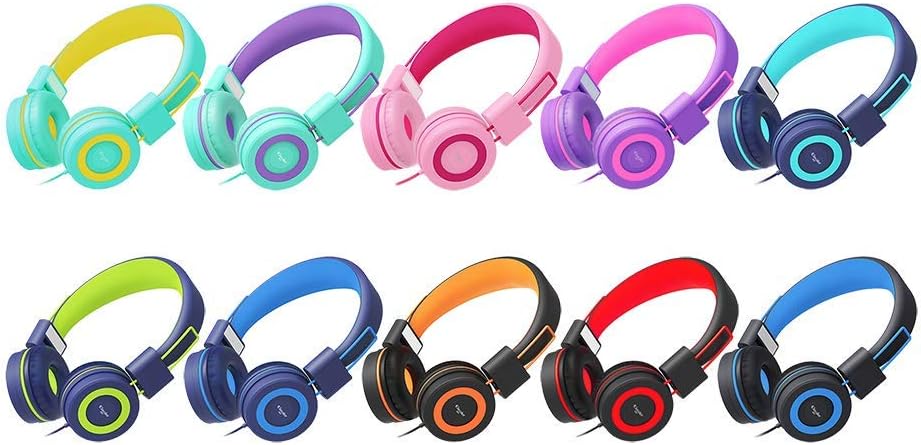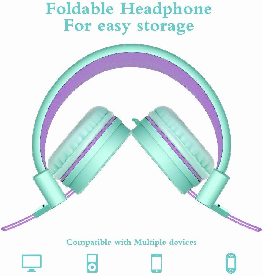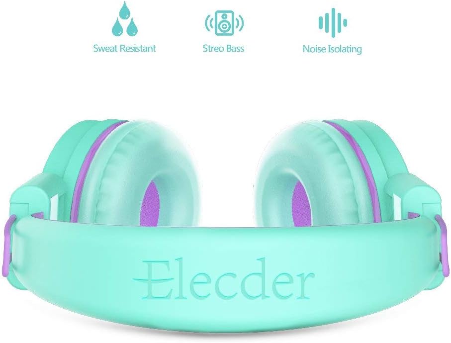 Elecder i37 - Audífonos plegables de diadema para niños, niñas y adolescentes, conector de 3.5mm, compatible con iPad, celular, computador, MP3/4, Kindle, MP3/4, kindle y tablet, verde/morado