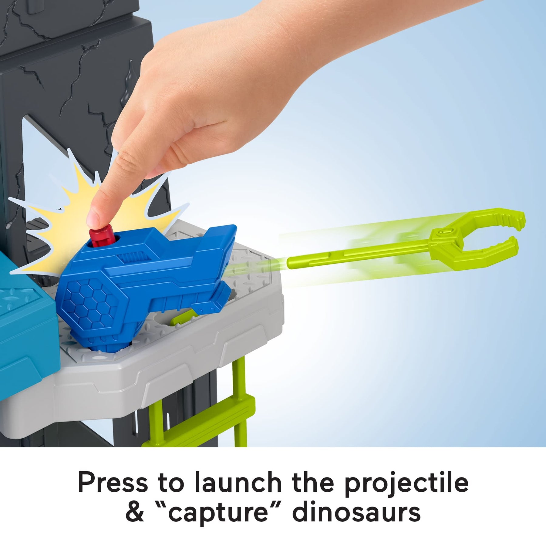 - Lanzador móvil con proyectil de red permite a los niños "capturar" dinosaurios sueltos; jaula con tapa abierta para una divertida acción de captura