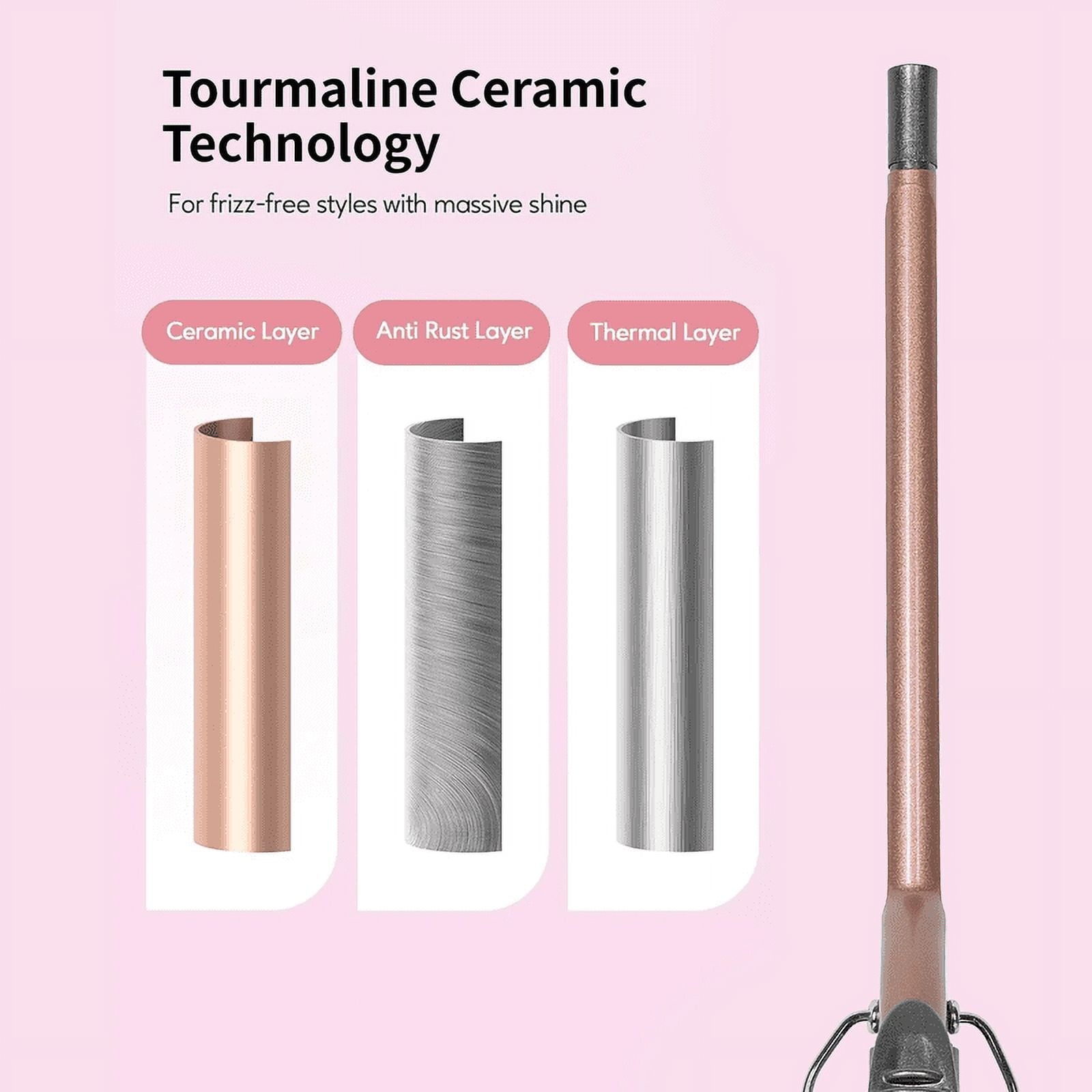 KIPOZI Tamaño de Viaje Profesional 0.3" Rizador de Pelo de Cerámica con Temperatura Ajustable de Doble Voltaje, Oro Rosa