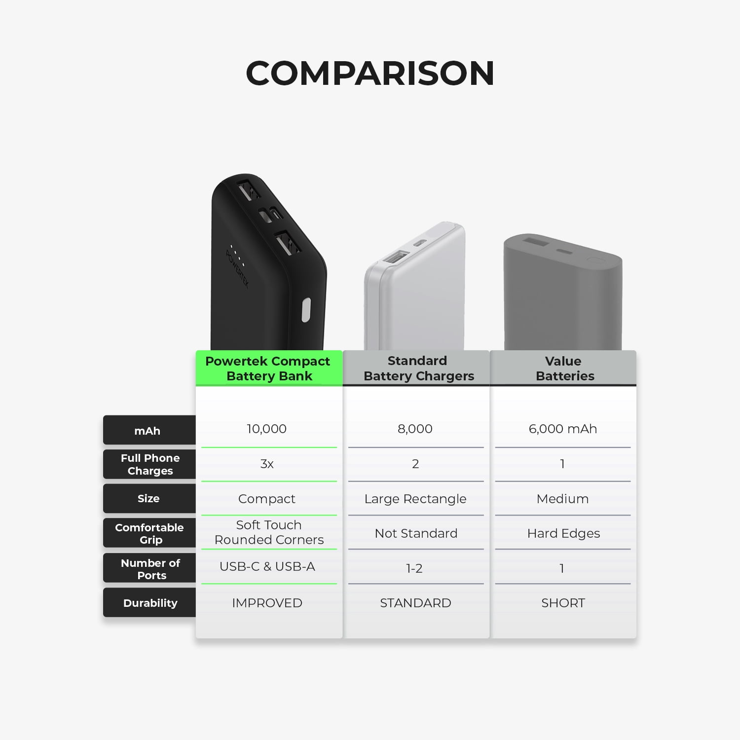 - Liquipel Powertek 10.000mAh Banco de potencia compacto 20W PD Carga rápida USB-C y USB-A