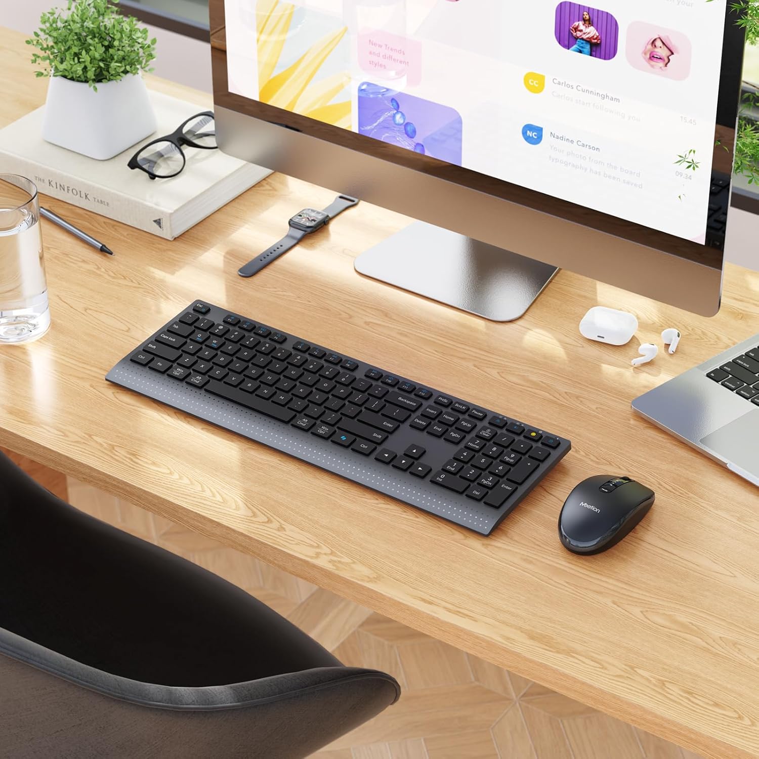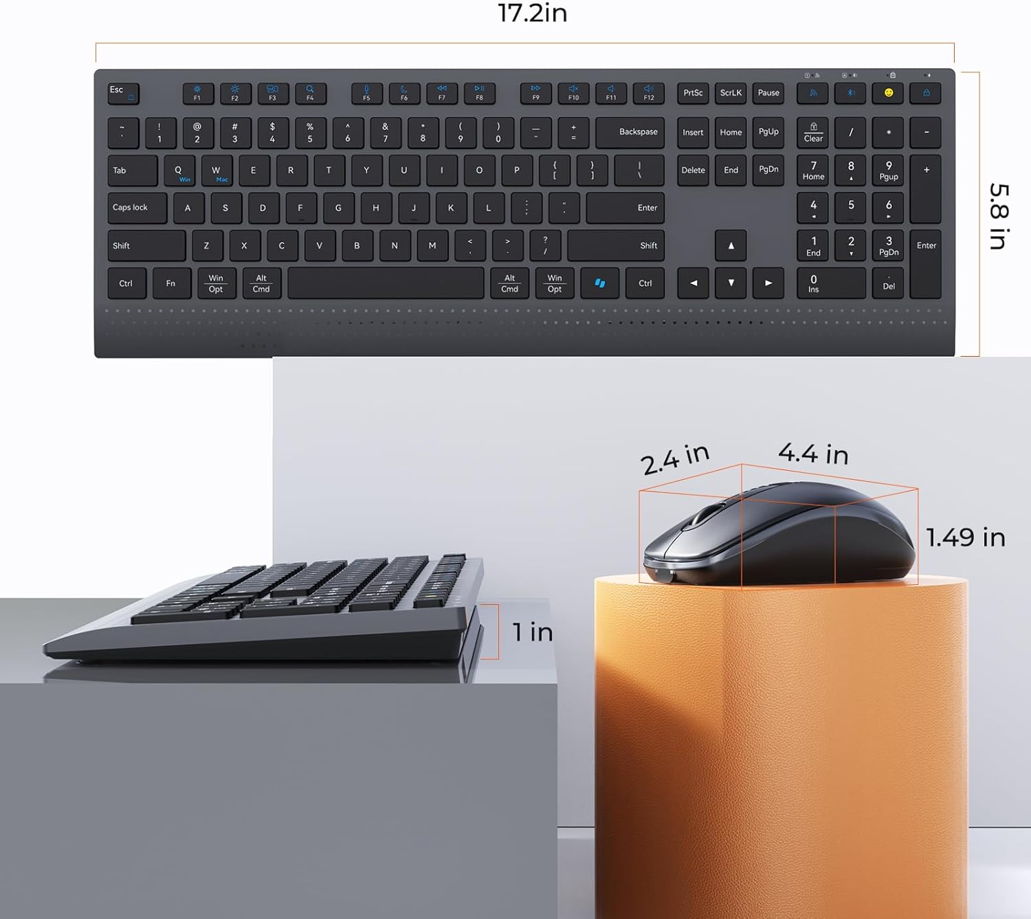 MEETION Combo de teclado y mouse Bluetooth, teclado y mouse inalámbricos, teclado recargable delgado de tamaño completo, mouse óptico de 3800 DPI, para computadora portátil, escritorio, iPad, teléfono