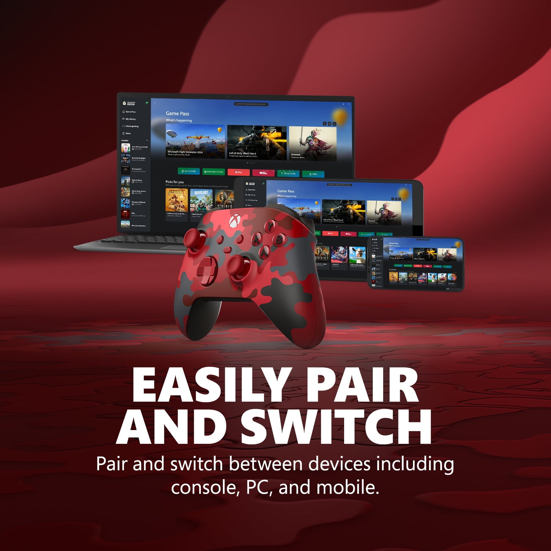 - Experimenta el diseño modernizado del control inalámbrico Xbox en el día huelga Camo, con superficies esculpidas y geometría refinada para mayor comodidad y control sin esfuerzo durante el juego.