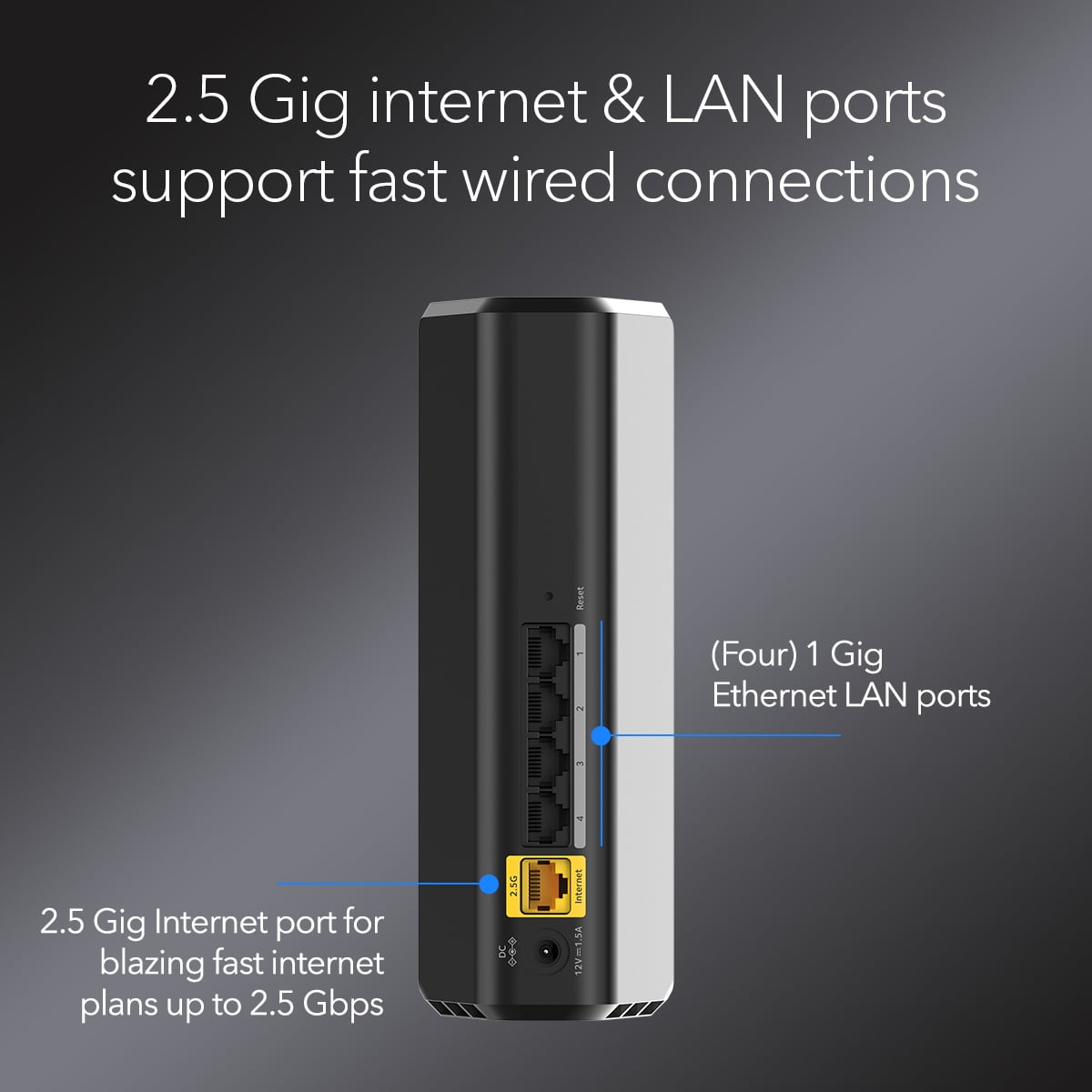 - El puerto de Internet de 2.5 gigas permite velocidades de múltiples gigas con los últimos planes de servicio de Internet por cable o fibra para la conexión a su módem de cable, unidad separada