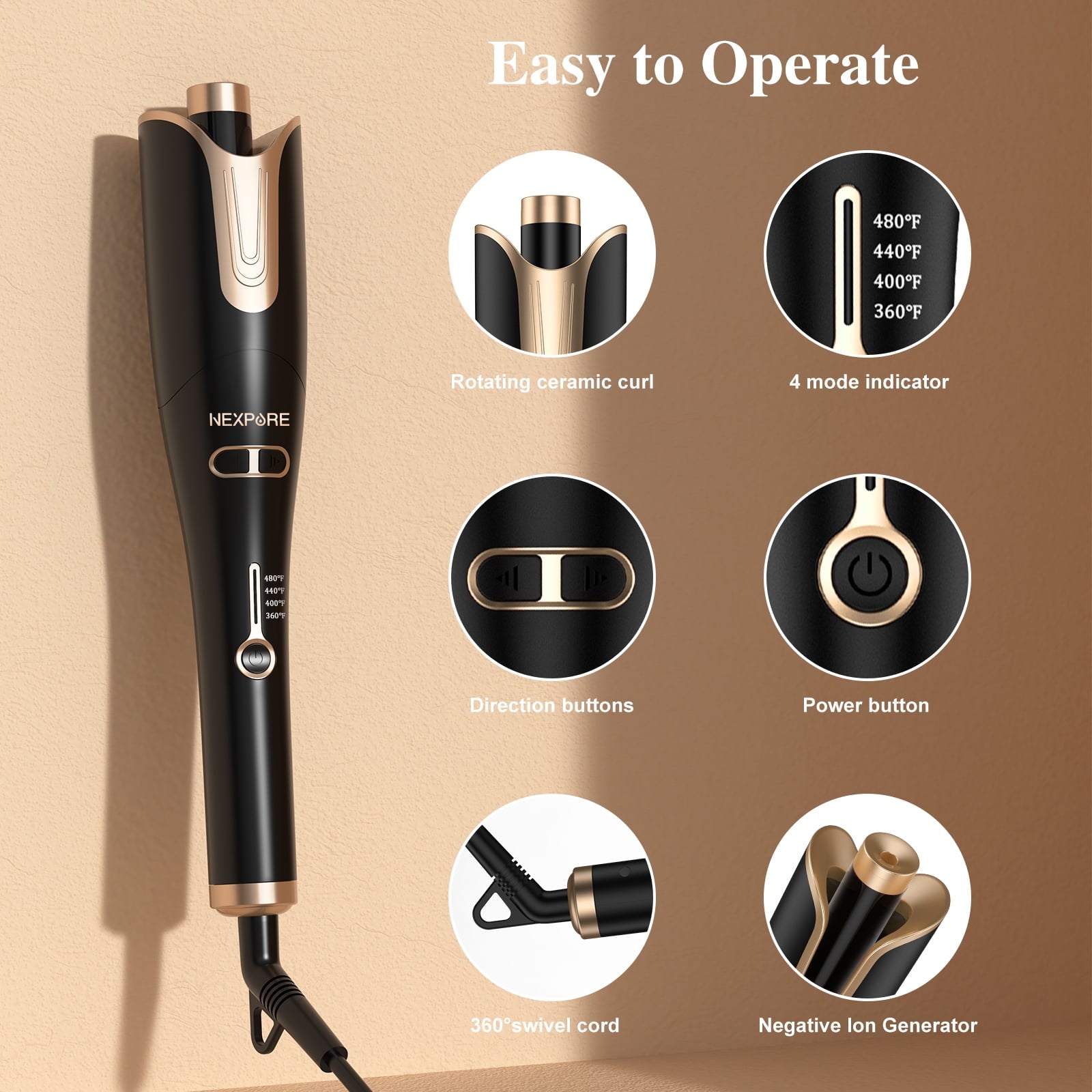 NEXPURE Curling Irons, Rizador Profesional con Barril Giratorio Grande de 1" y 4 Temperaturas, Cabello Rizado de Salón, Dorado