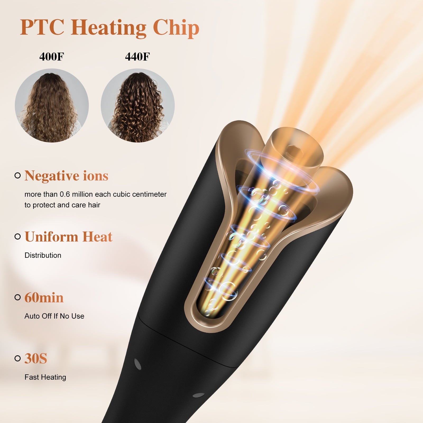 - 4 ajustes de temperatura para el estilo personalizado: con 4 ajustes de temperatura diferentes, este rizador automático unidad con un calentador PTC dual que calienta hasta 360 ° F en solo 30 segundos. El barril de rizado distribuye uniformemente el calor para minimizar el daño del cabello. Ajuste la temperatura de 360 ° F a 480 ° F para adaptarse a varios tipos de cabello y lograr los rizos perfectos cada vez.