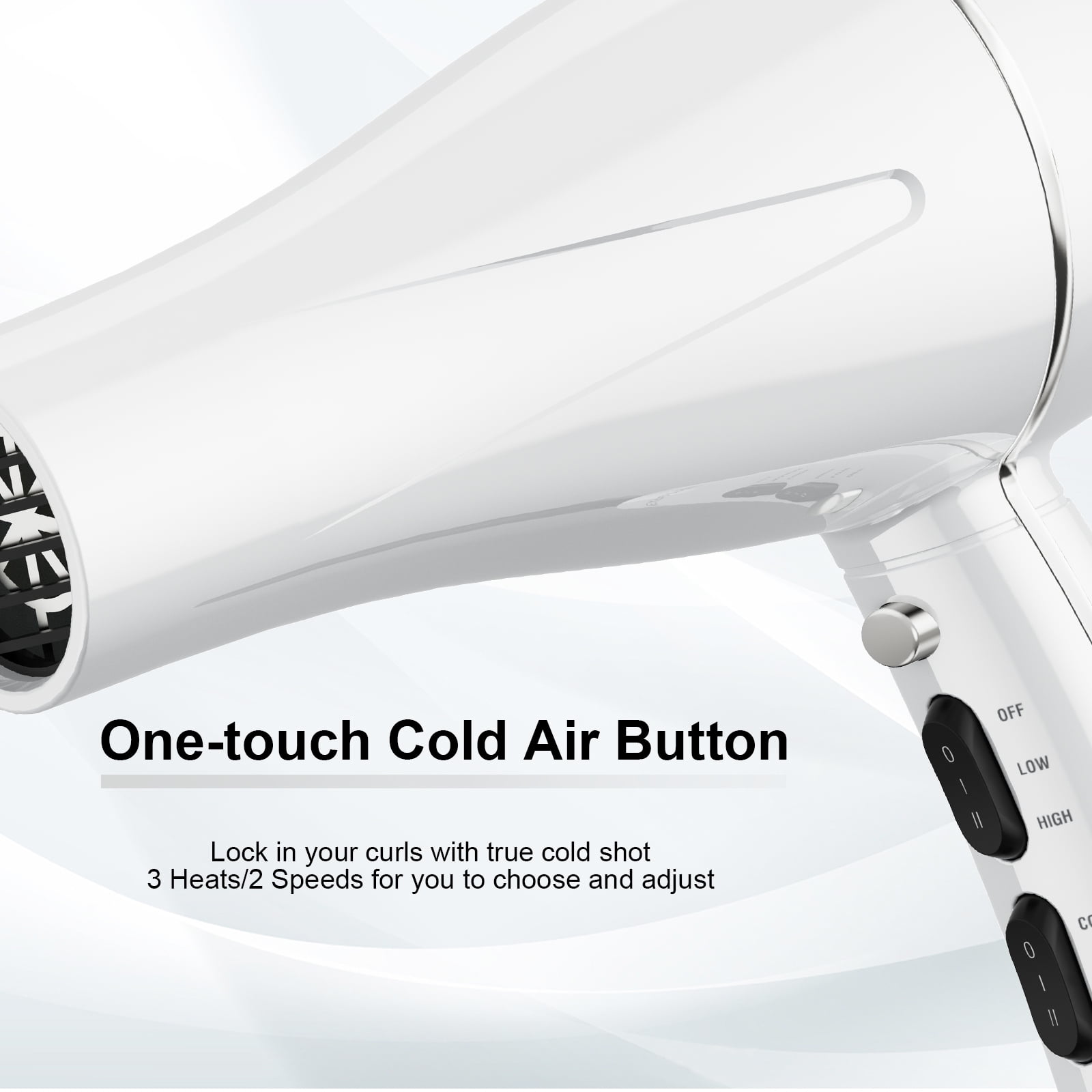 - 3 accesorios para todo tipo de cabello: boquilla concentradora para un estilo preciso, difusor para rizos y control de encrespamiento, y peine para alisar cabello grueso. El secador de cabello cuenta con tecnología de cerámica de titanio con calor infrarrojo para un secado rápido y menos daño, más 3 ajustes de calor y 2 velocidades y un botón de disparo frío para bloquear estilos de calidad de salón.