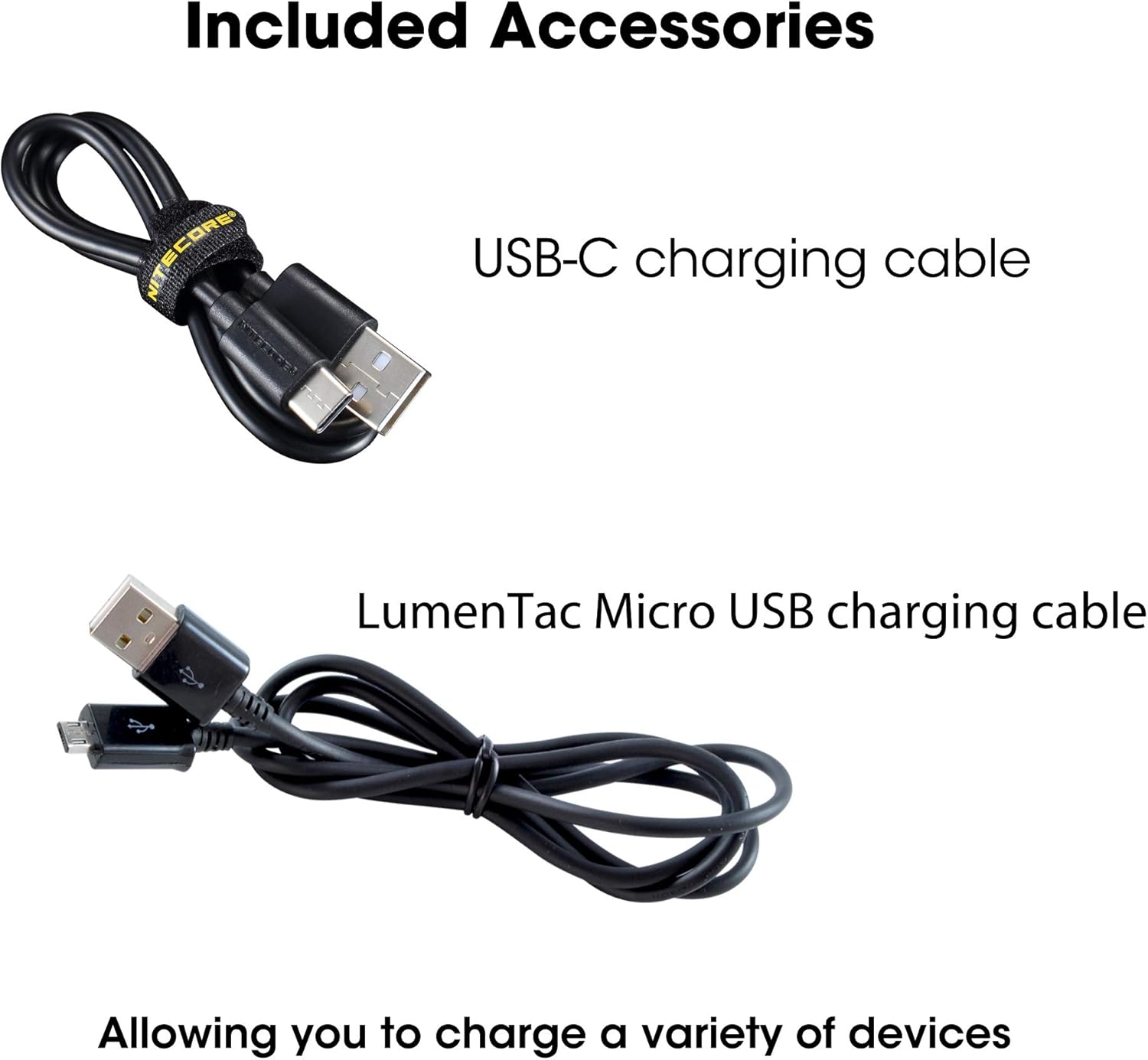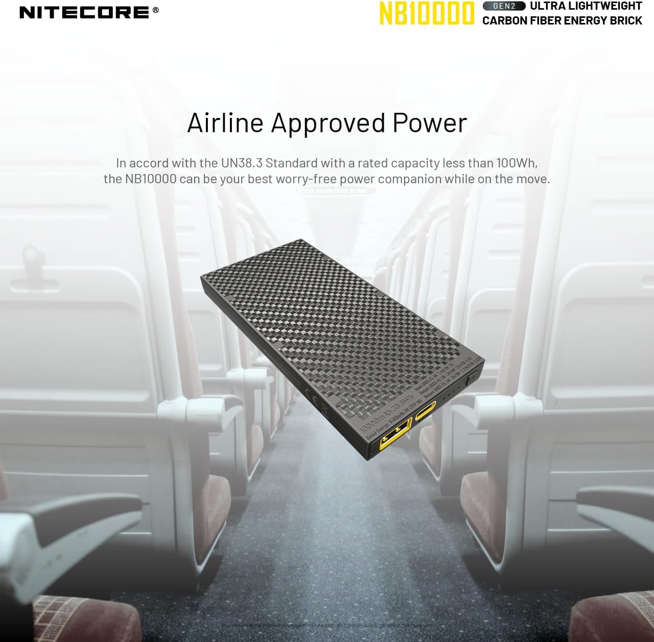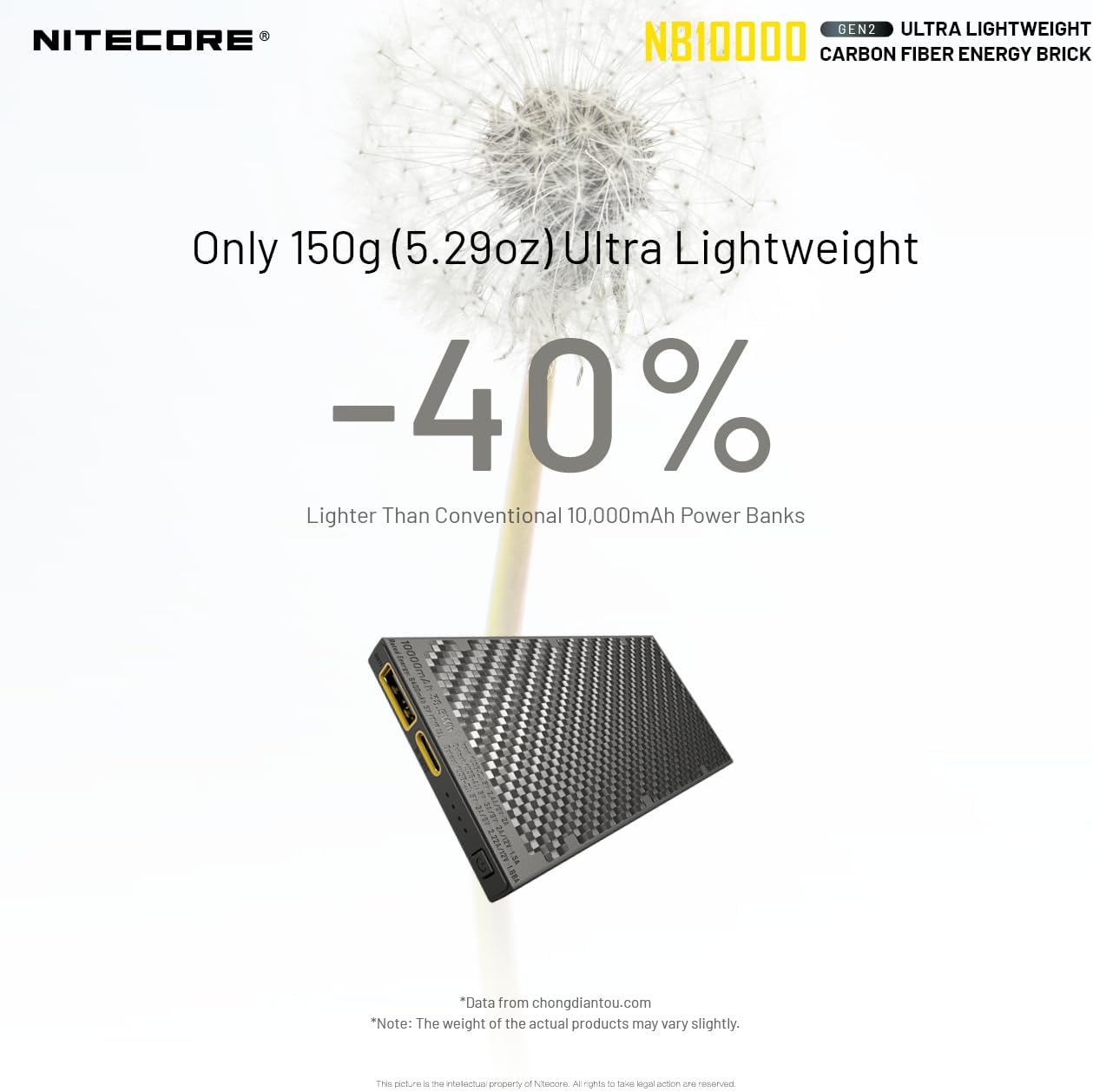 Nitecore NB10000 Gen II (Gen 2) - Banco de energía ultrafino, 10000 mAh QC de carga rápida USB y USB-C de carga rápida con cables para teléfonos, linternas y faros (negro), paquete de cables dobles