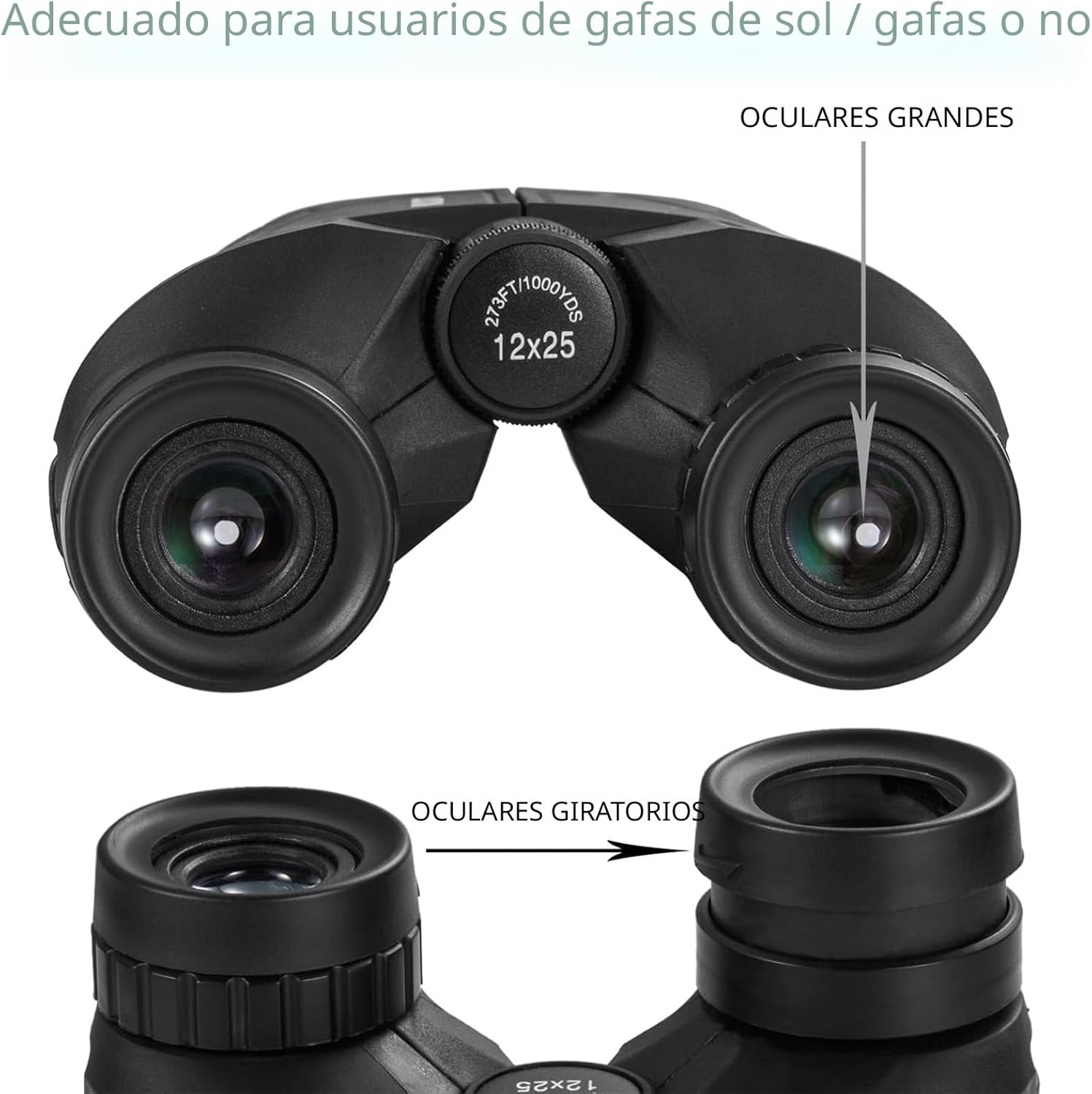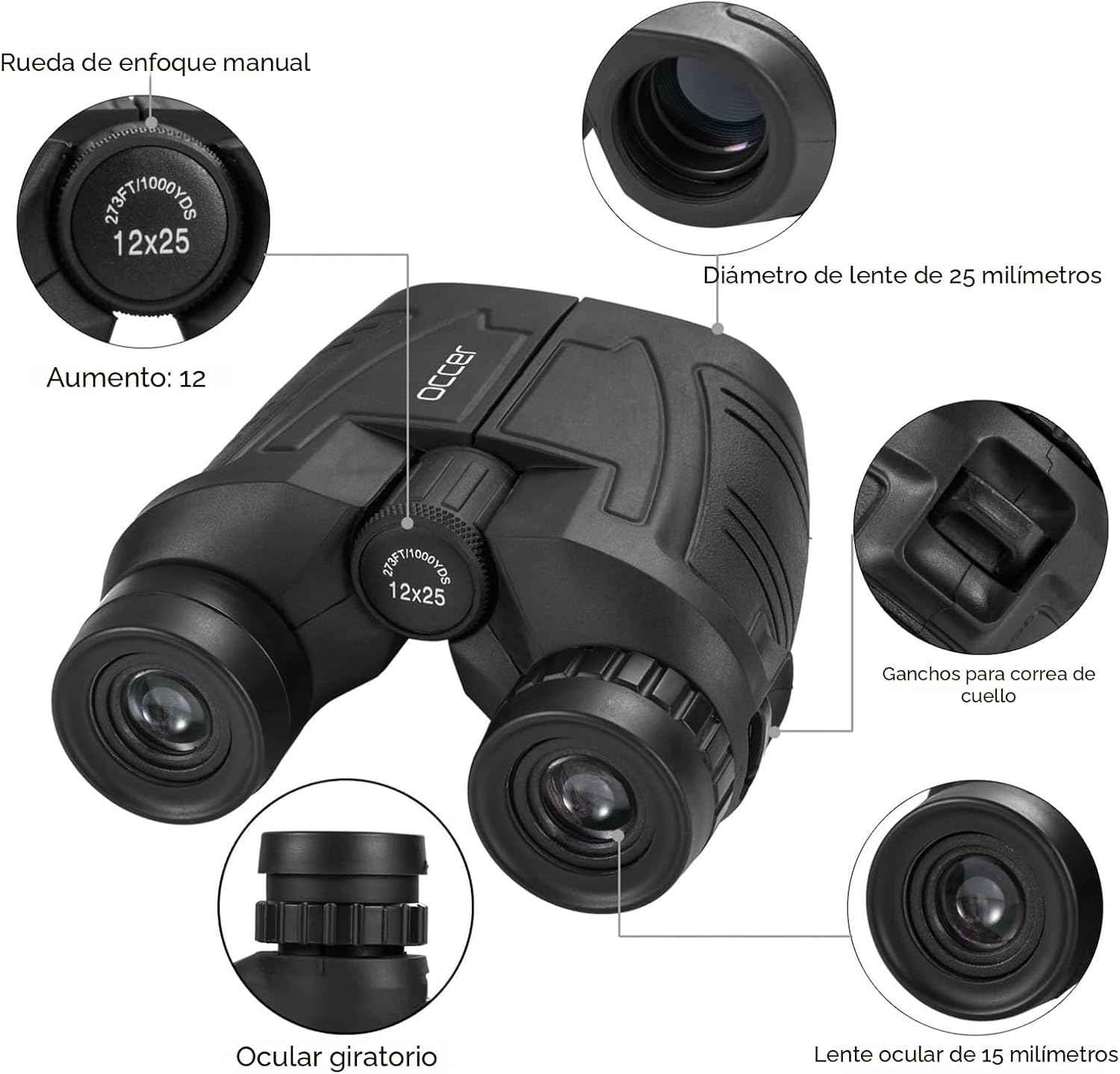 Occer Prismáticos compactos de 12 x 25 para adultos y niños, ocular grande impermeable con visión de poca luz, binoculares de fácil enfoque de alta potencia para observación de aves, caza al aire
