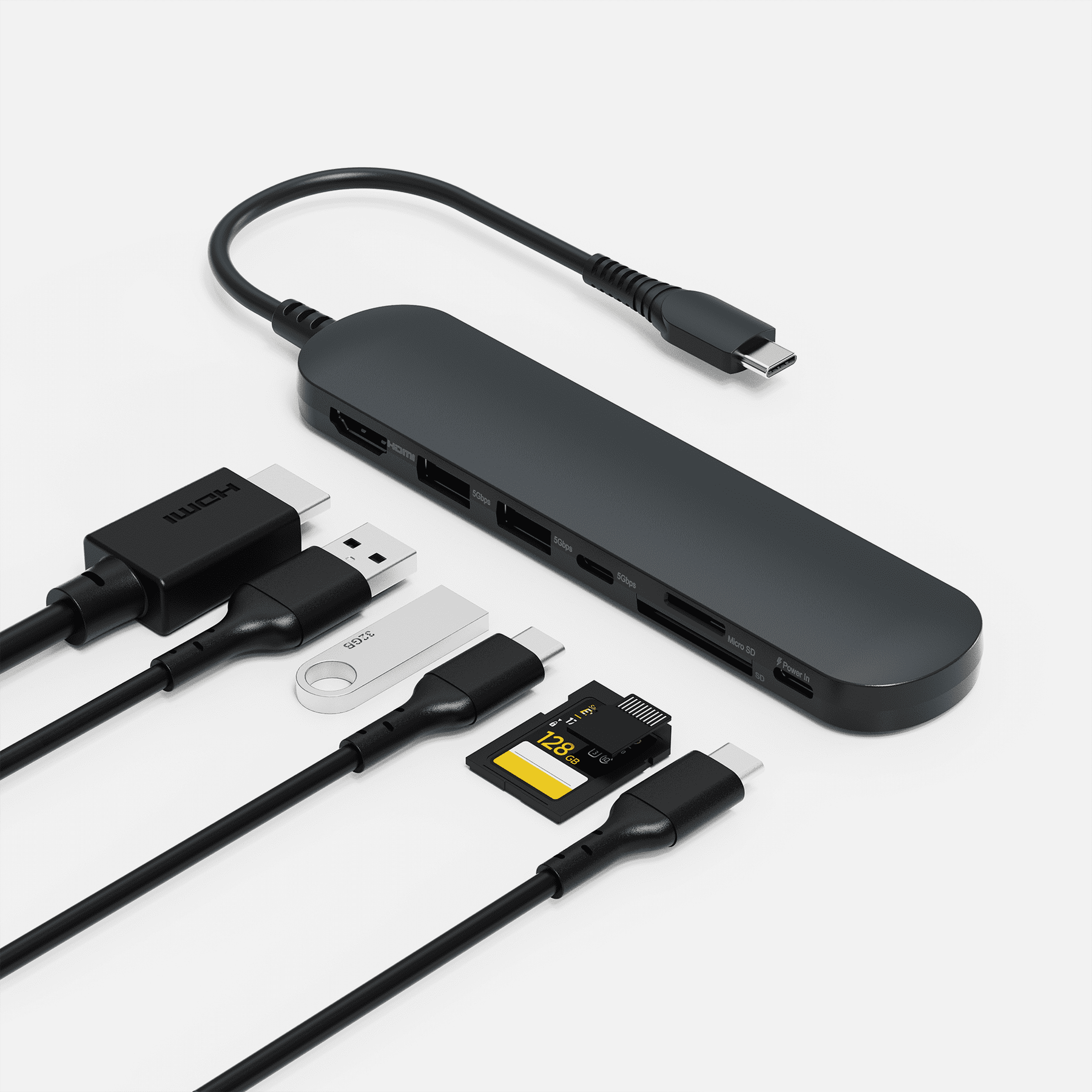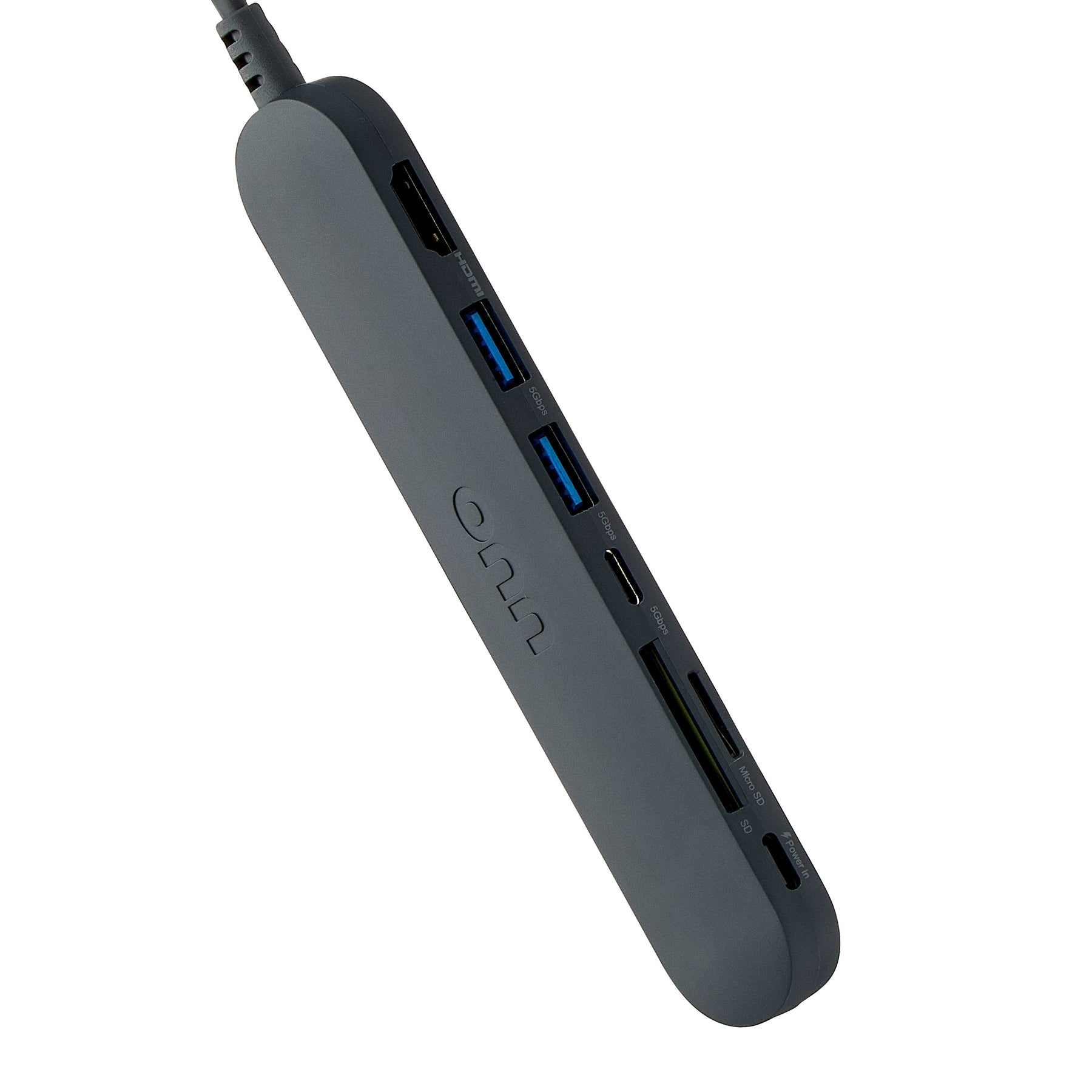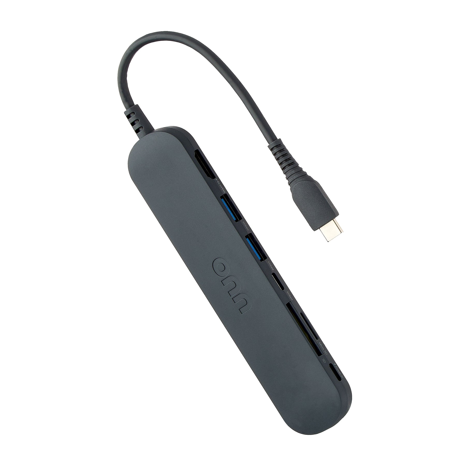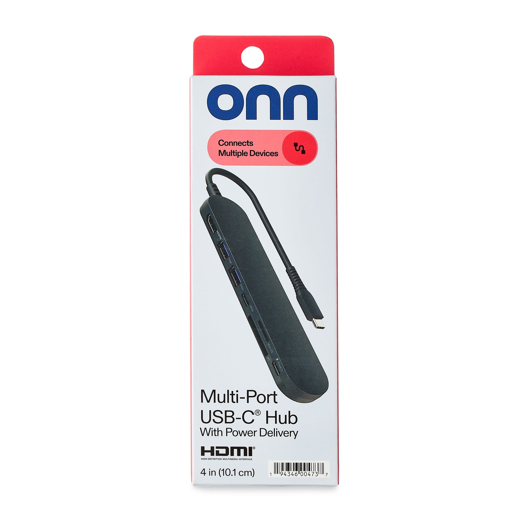 • onn 7-en-1 Adaptador USB-C con 100W USB-C 3.2 Gen. Entrega de energía, USB 3.0, 4K HDMI, lector de tarjetas de memoria SD/TF, 4", Greystone