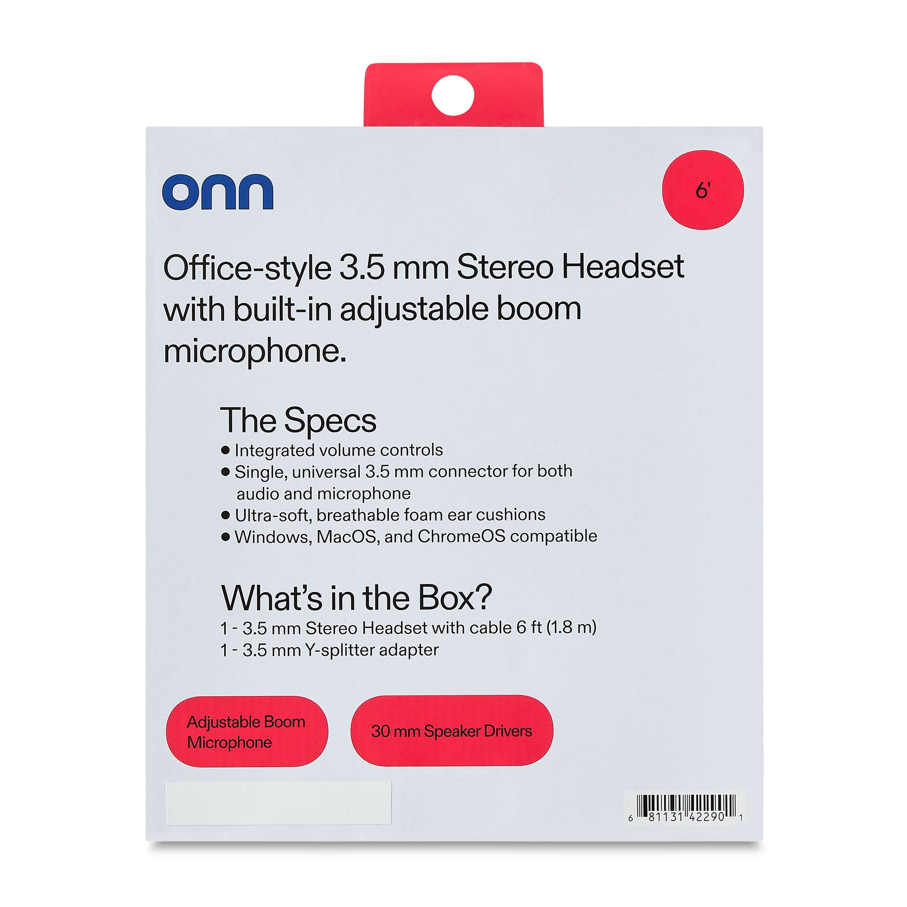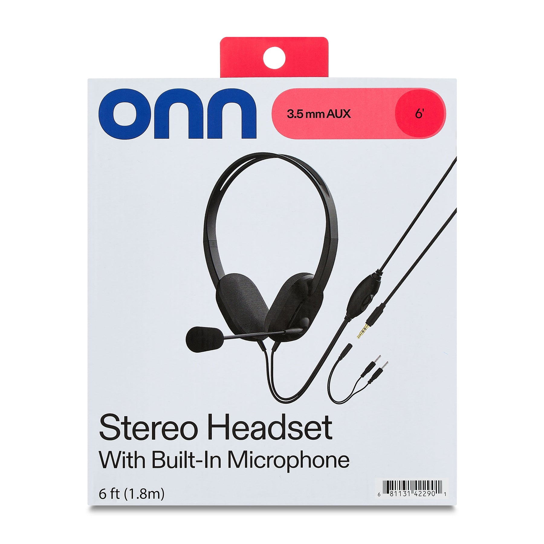 - onn Auriculares estéreo AUX de 3,5 mm con micrófono incorporado, negro