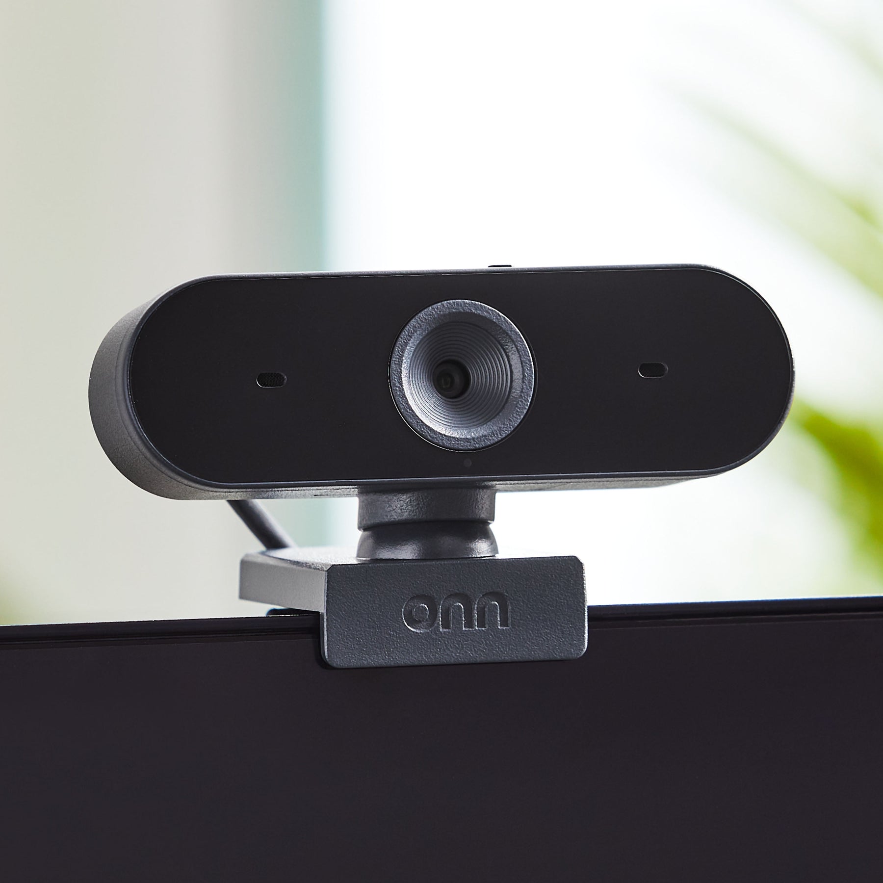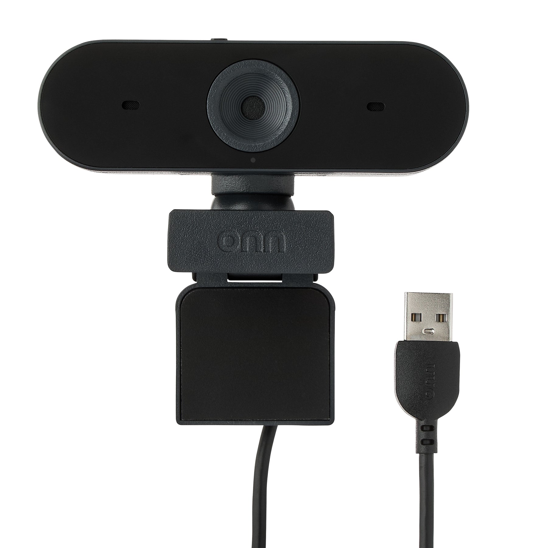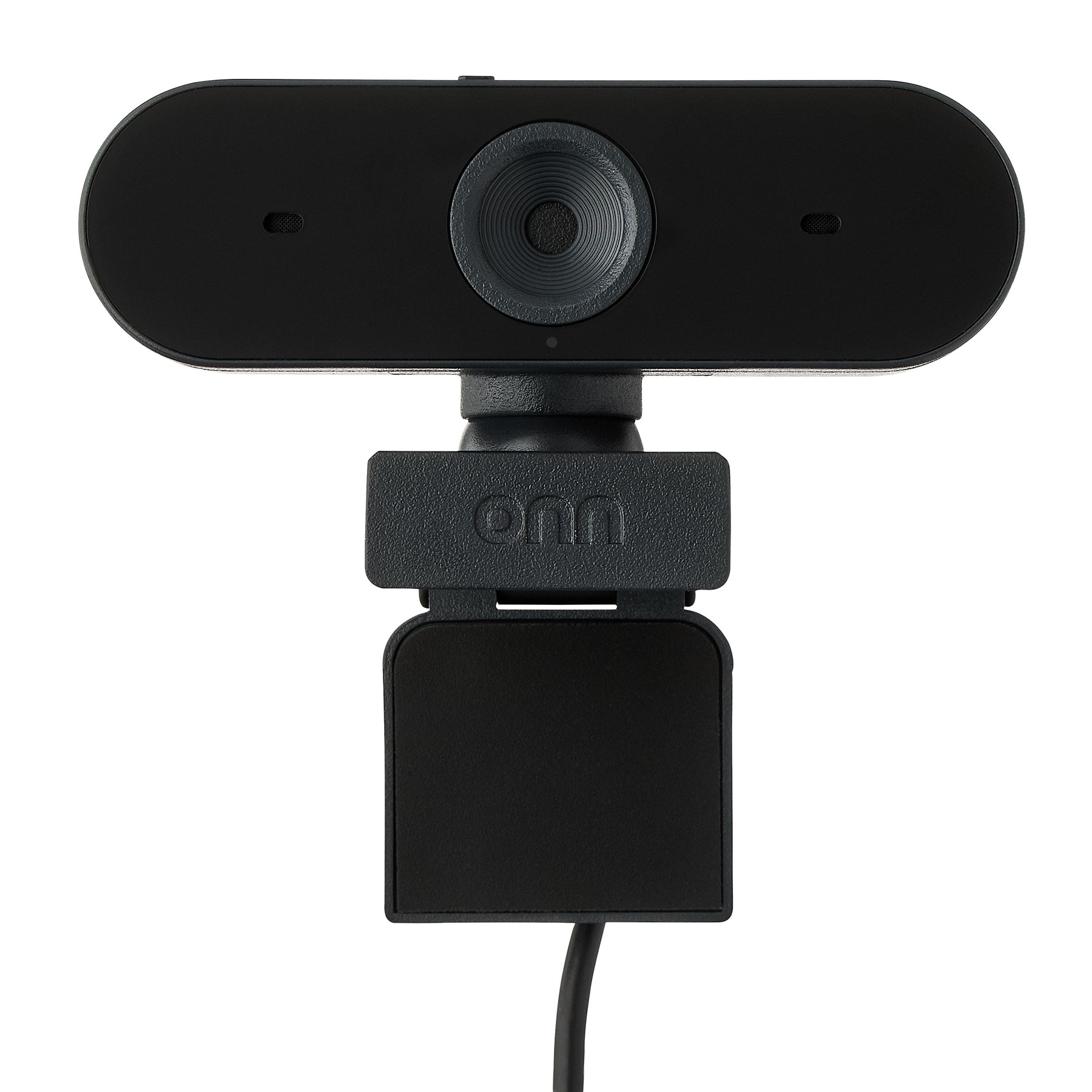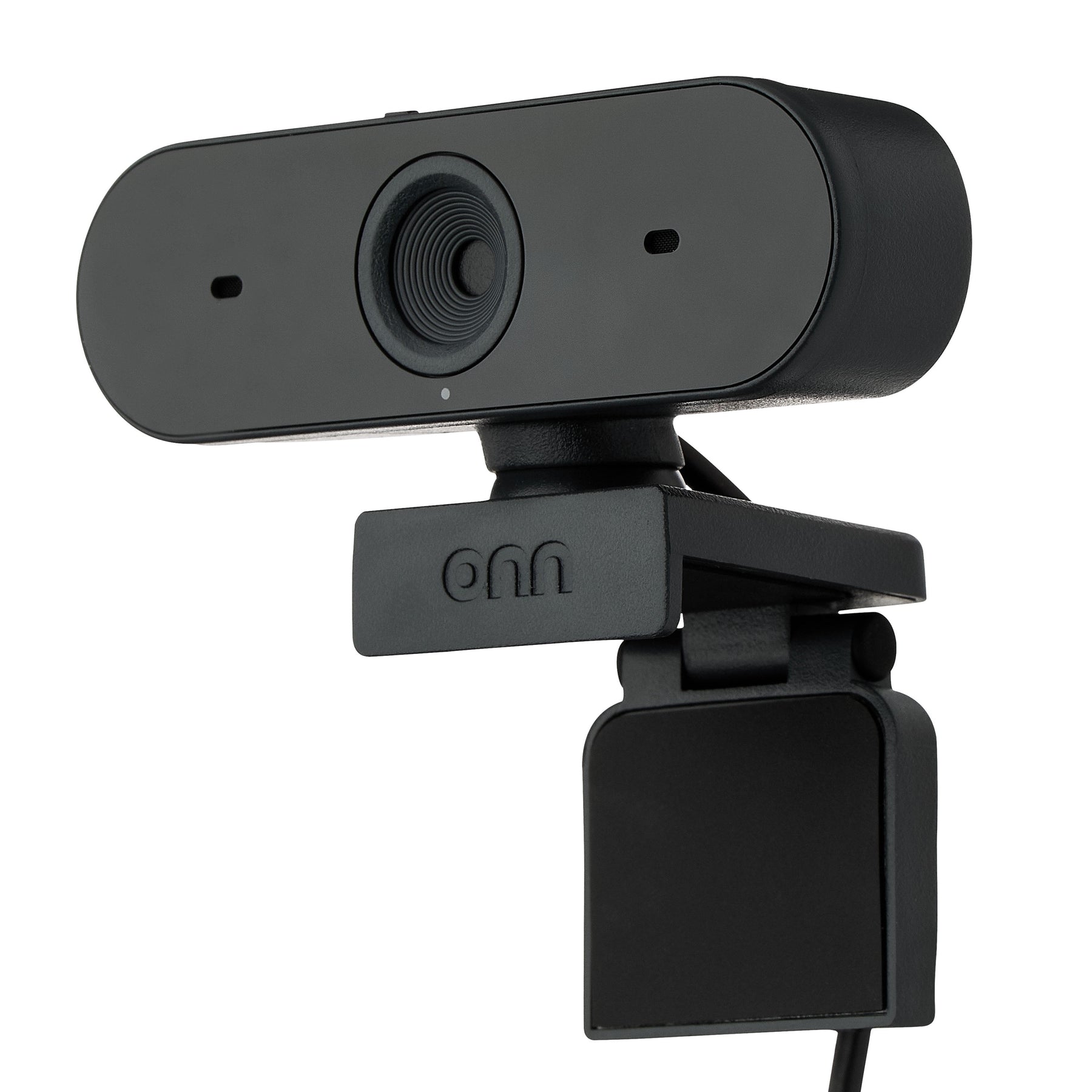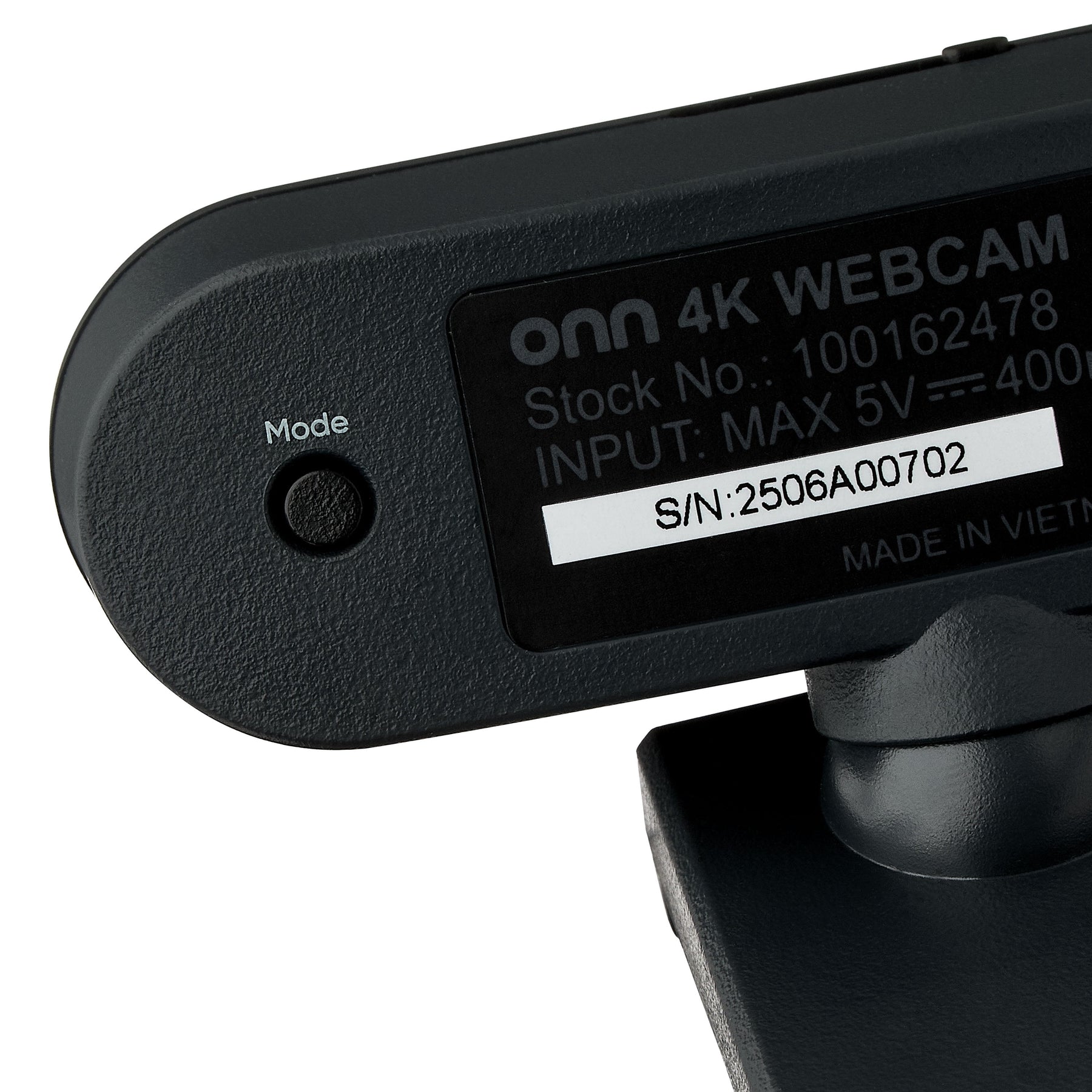 - onn Cámara web 4K con enfoque automático y cabeza giratoria, micrófonos duales incorporados, cubierta de privacidad, Greystone