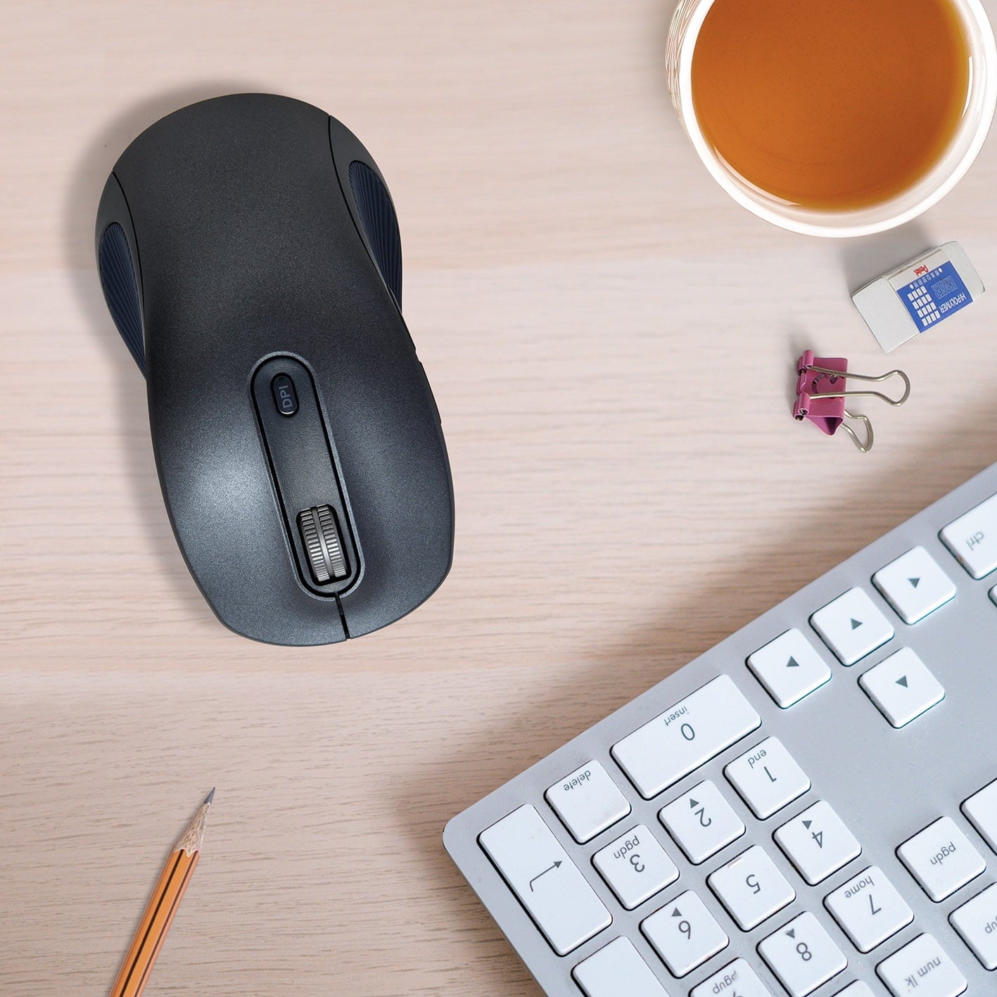 - Conexión inalámbrica de 2,4 GHz con receptor USB nano (almacena en el compartimento de la batería cuando no está en uso)