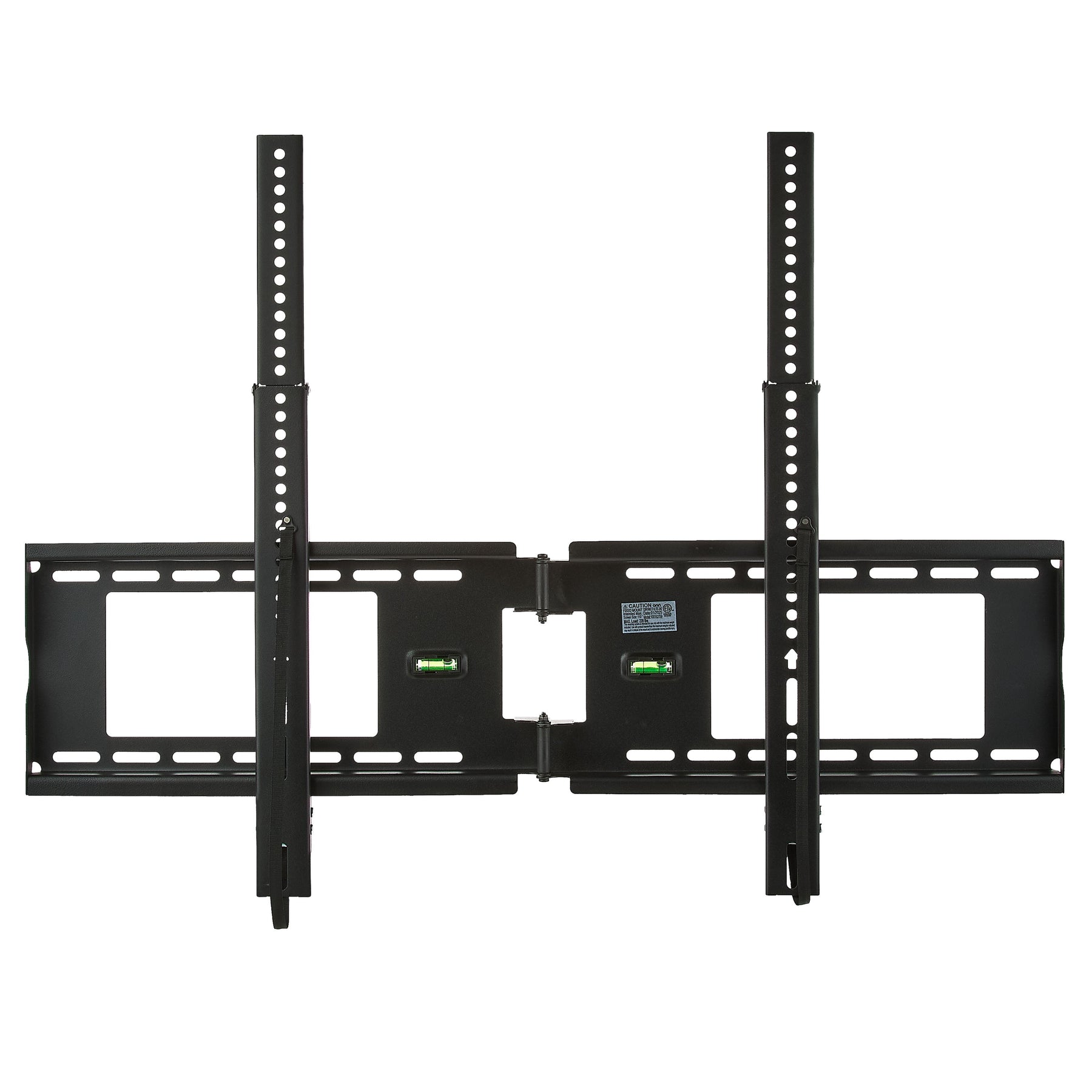 - ¿Qué hay en la caja? 1- placa de pared, 2- brazos de montaje de TV, 2- bolsas de hardware colgante, 1- plantilla colgante