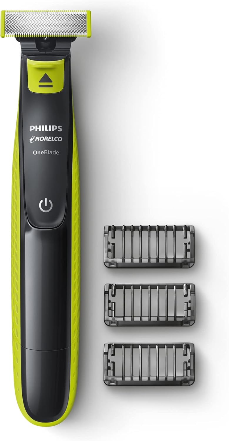 Tecnología OneBlade: el cortador de movimiento rápido (12,000 x min) es eficiente, incluso en cabellos más largos; el sistema de protección dual con revestimiento deslizante y puntas redondeadas hace que el afeitado sea más fácil y cómodo