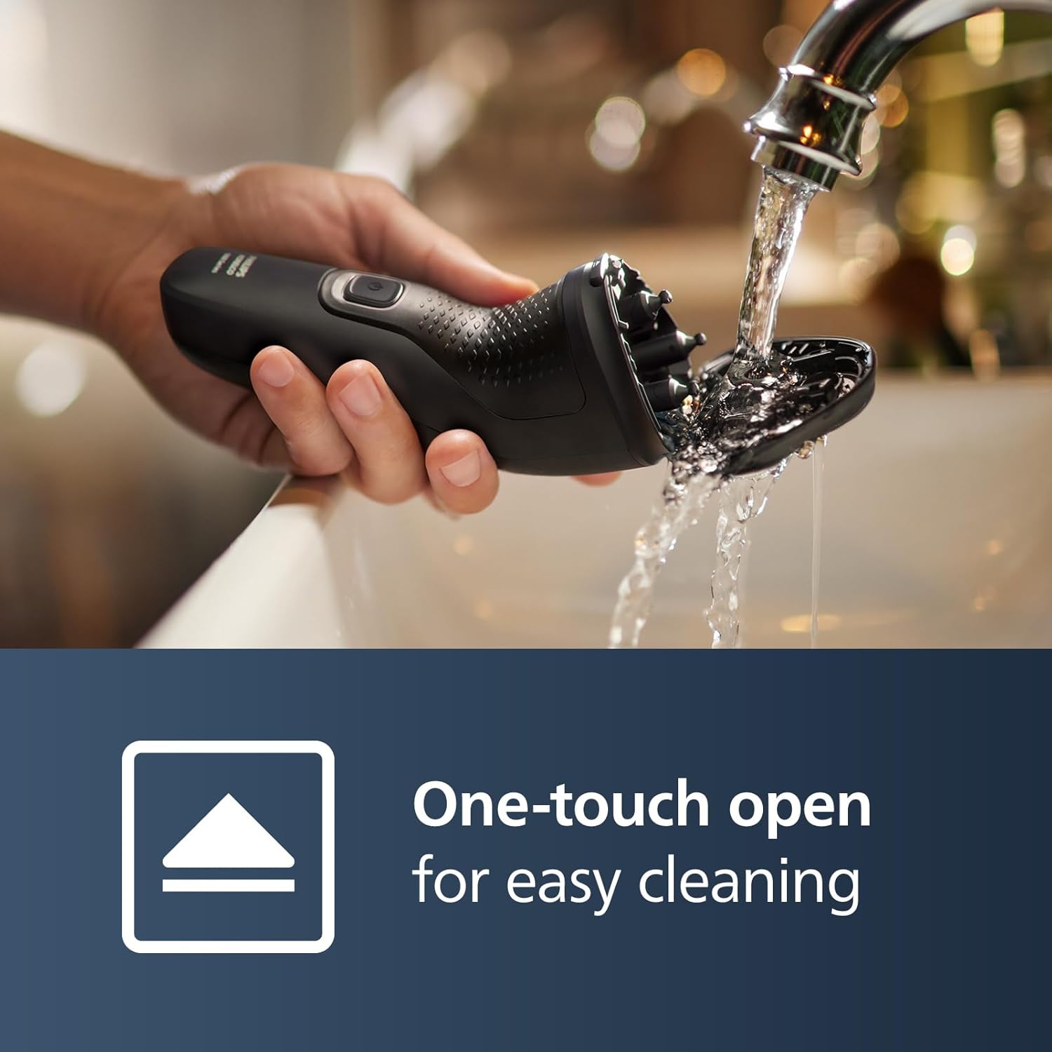 De la marca #1 de afeitadoras eléctricas¹: la serie Shaver 1000 te ofrece un afeitado rápido y limpio gracias a las 27 cuchillas ComfortCut autoafilables y cabezales flotantes 4D
