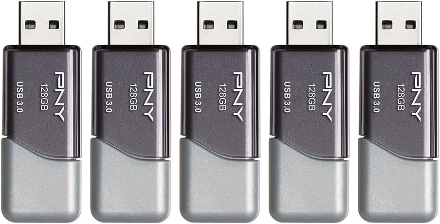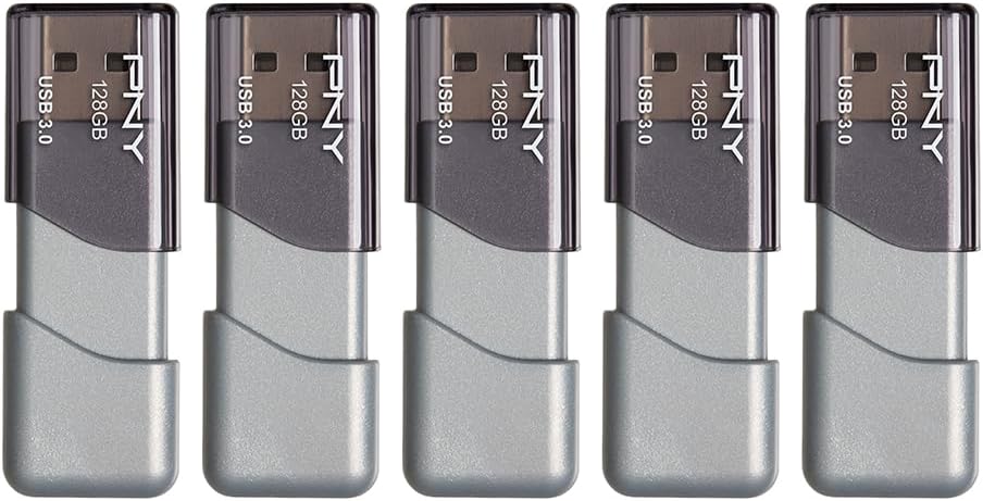 PNY Paquete de 5 unidades flash Turbo Attaché 3 USB 3.0 de 128 GB – Gris, P-FD128X5TBOP-MP, 100MB/s, ligero y duradero, almacenamiento y transferencia de datos
