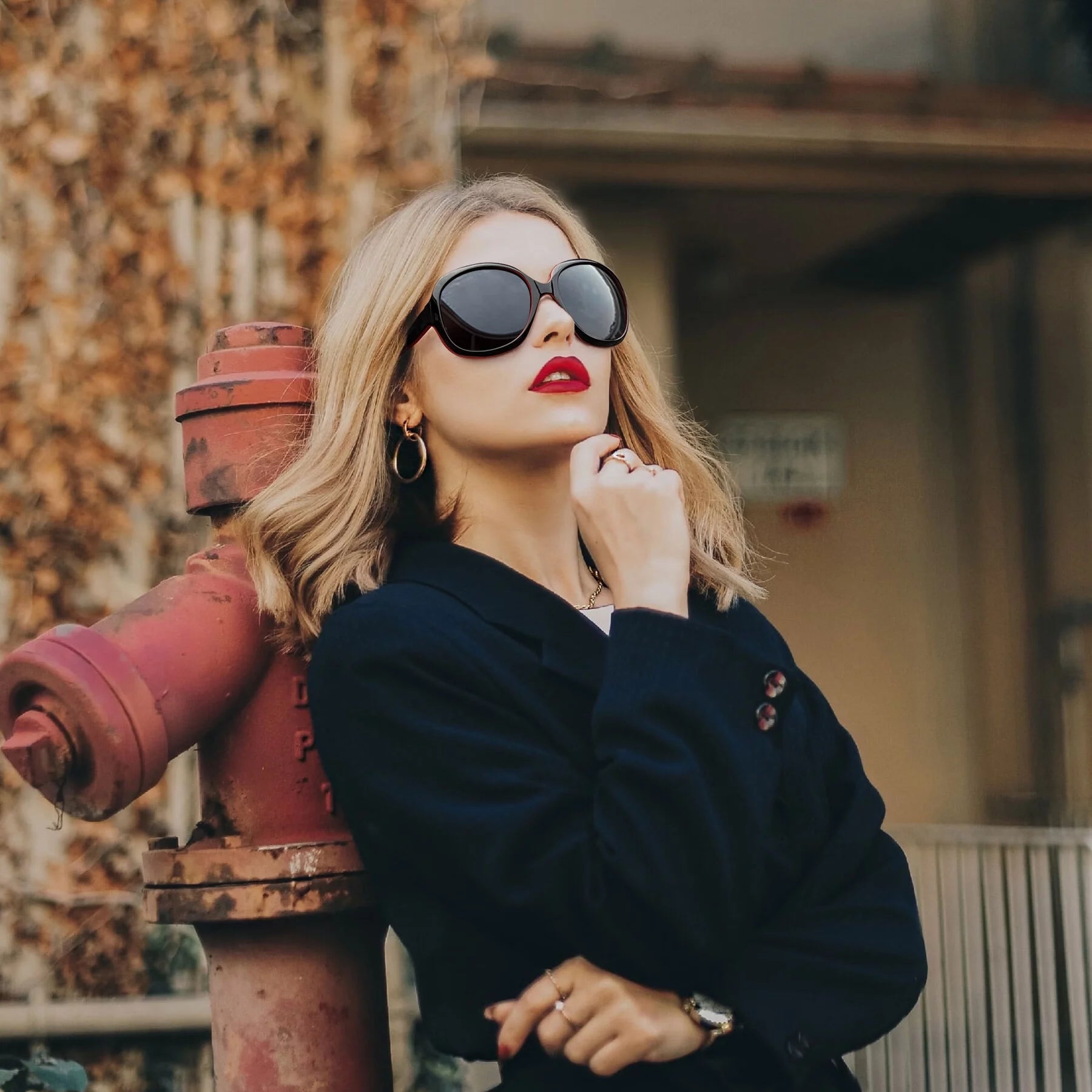 Polarized Sunglasses for Women, Ladies Oversized Sun Glasses UV Protection (Black Red)