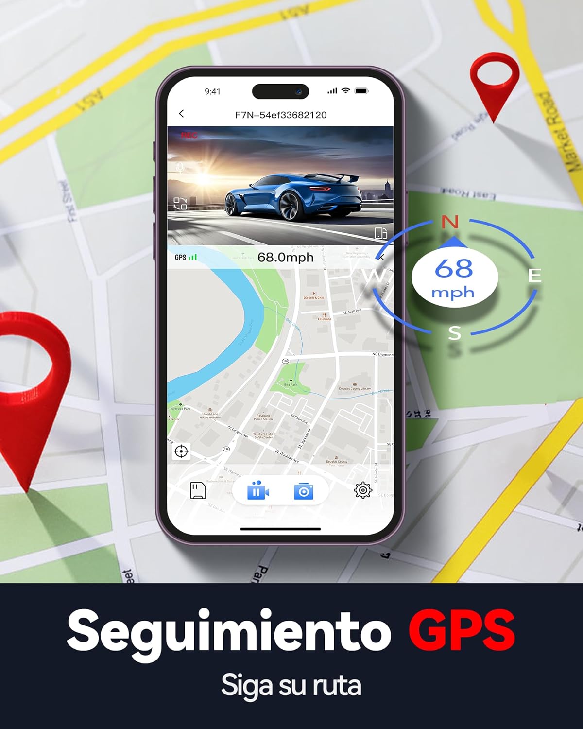 Componentes incluidos: 1 manual de usuario (idioma español no garantizado), 1 GPS integrado de montaje adhesivo, 1 tarjeta de 64 GB, 1 cable de cámara trasera de 21.3 pies; 1 cable de fuente de alimentación de 11.5 pies con cargador de automóvil, 2 calcomanías electrostáticas; 1 palanca de palanca, 1 cámara trasera F7N 4K, 1 cámara trasera 1080P