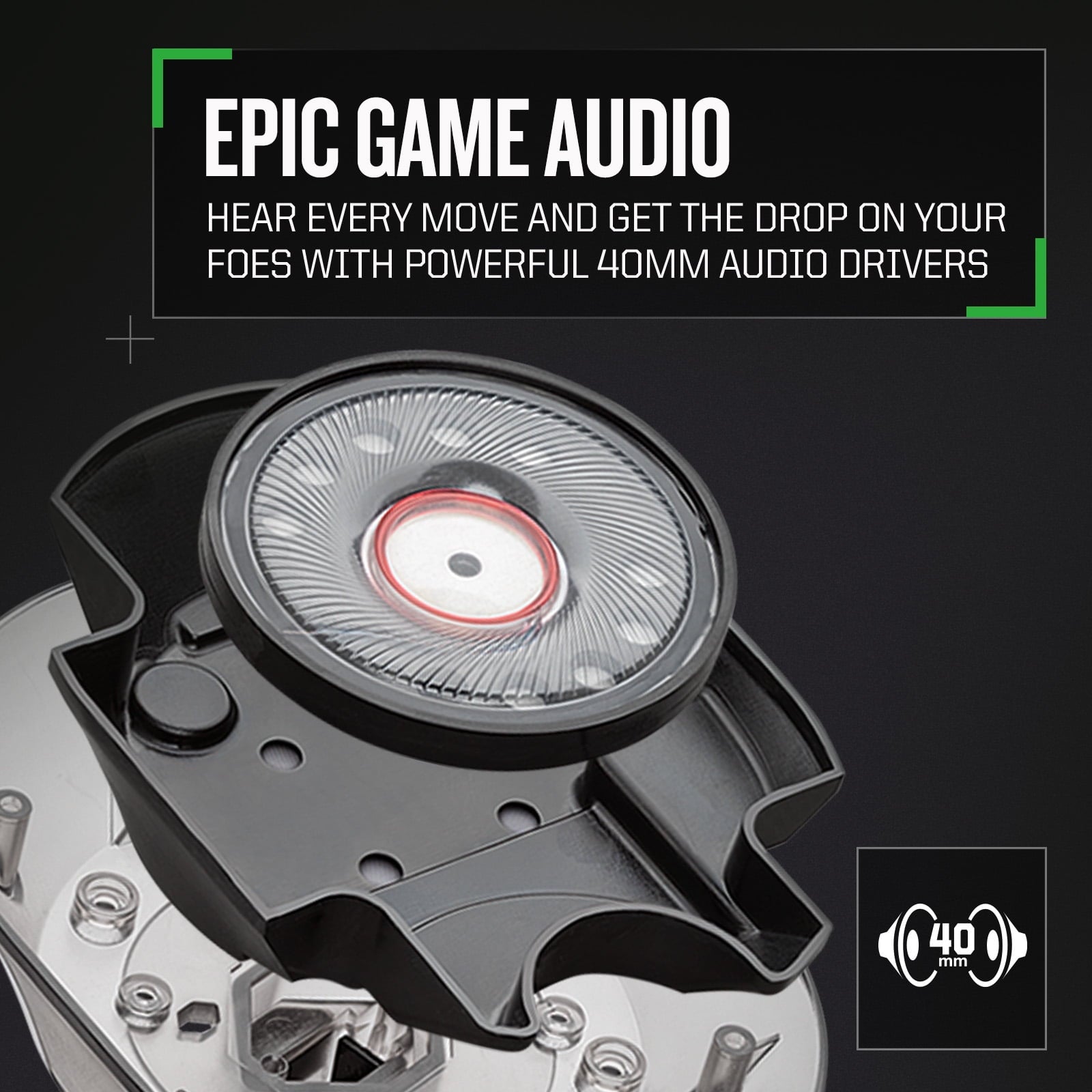 • Audio de juego épico: escucha cada paso o recarga, y consigue la gota en tus enemigos, con audio ajustado con precisión que captura cada detalle. Desde el estruendo de los ataques aéreos hasta los susurros de los enemigos al acecho, los poderosos conductores de 40 mm te llevan al corazón de la acción con un audio épico del juego.