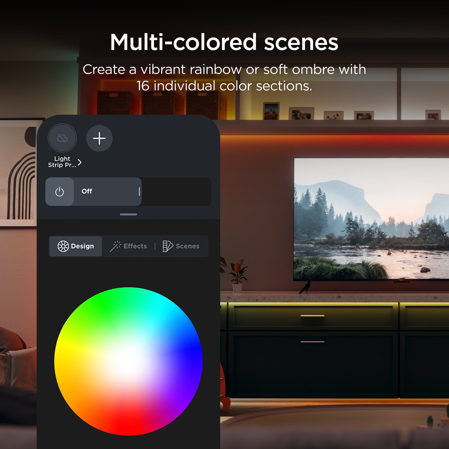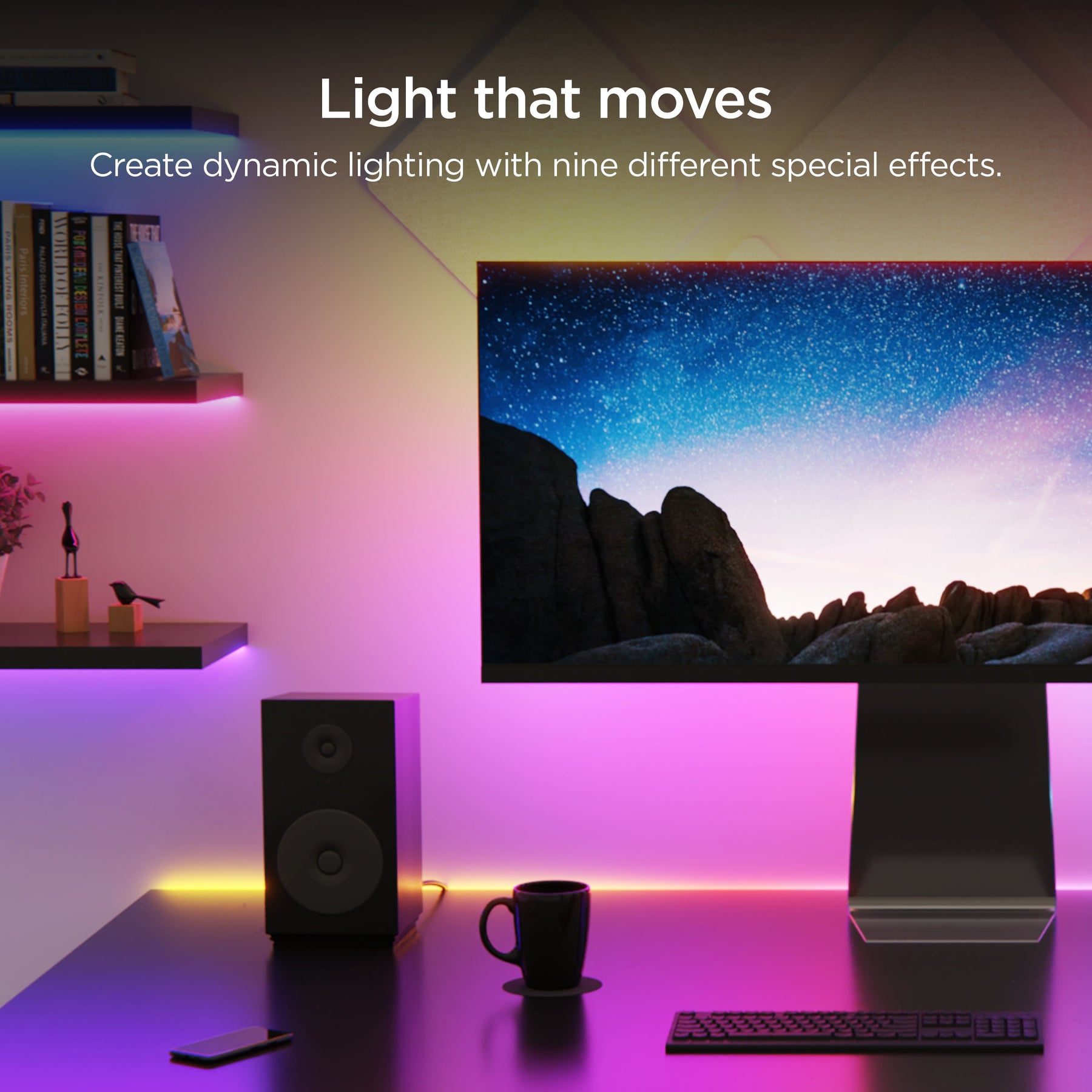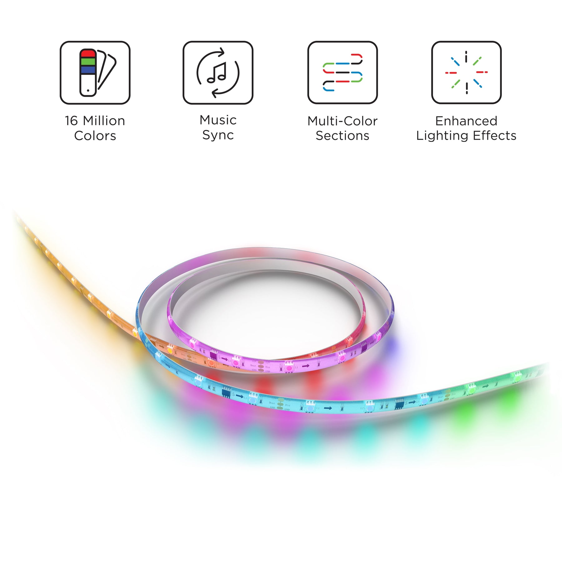 - Iluminación flexible: Detrás de su televisor, debajo de su cama, en su techo salpica cualquier espacio interior con 16 millones de colores. Recortable para adaptarse a su espacio.