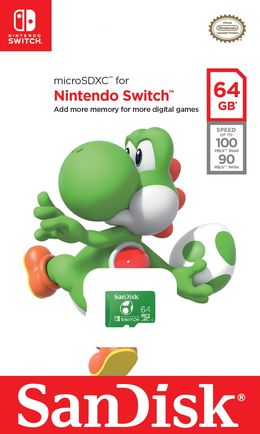 SanDisk Tarjeta de Memoria microSDXC UHS-I de 64 GB con Licencia para Nintendo Switch, Fabricada para Nintendo Switch 1 - Yoshi - SDSQXAO-064G-AW6ZN - Default Title