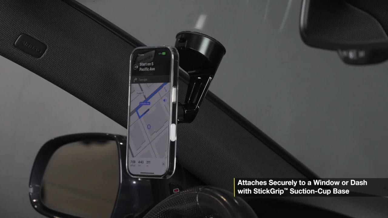 - El MagicMount Charge Pro Window/Dash Magnetic Wireless Charging Phone Mount incluye un cargador de coche USB-C de 20 W, una toallita de limpieza y un clip de administración de cables para una configuración organizada en su automóvil.