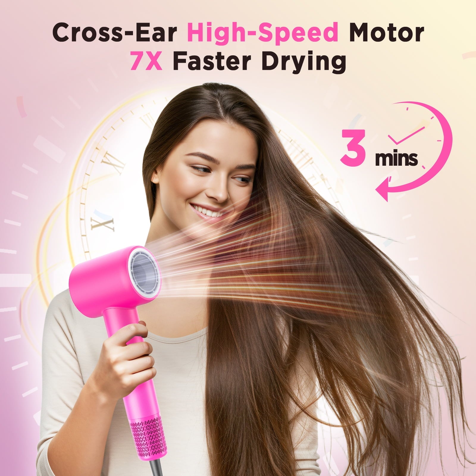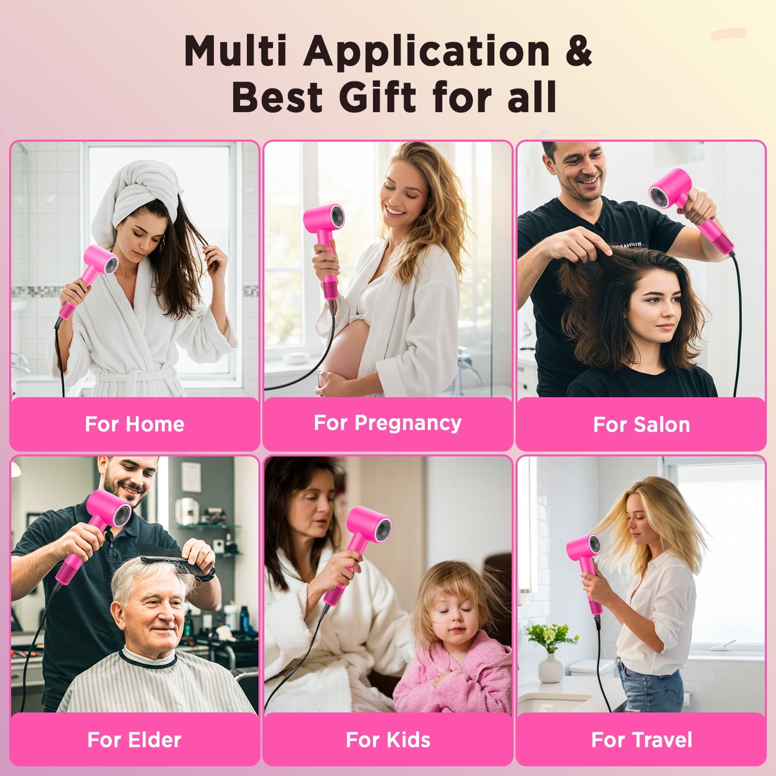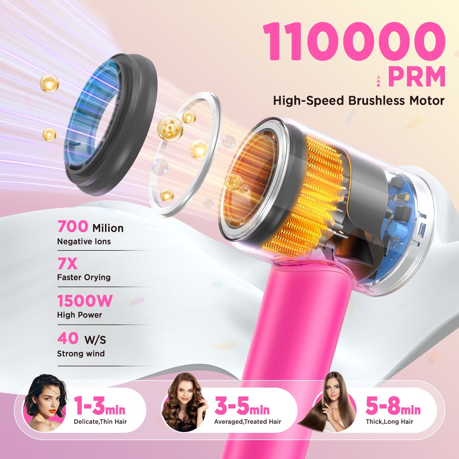 Secador de Pelo de Alta Velocidad, Secador de Pelo Iónico de Viaje de 110000 RPM, Regalos de Secado Rápido para Mujeres, Rosa