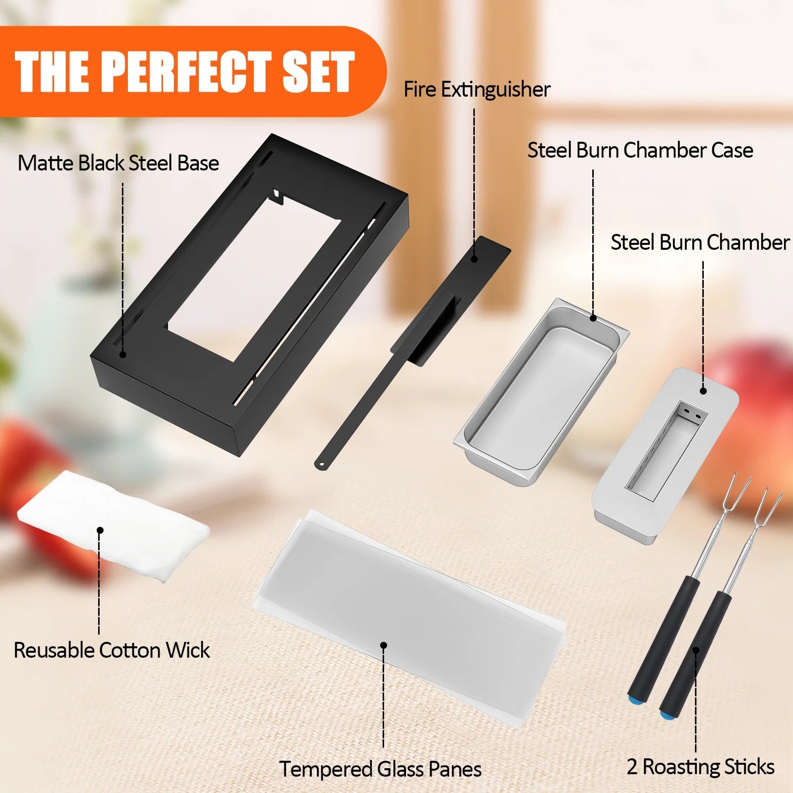 - Segura y estable: La presencia de un quemador de inserto de acero inoxidable y paneles de vidrio templado a ambos lados mejora las características de seguridad de la chimenea de mesa