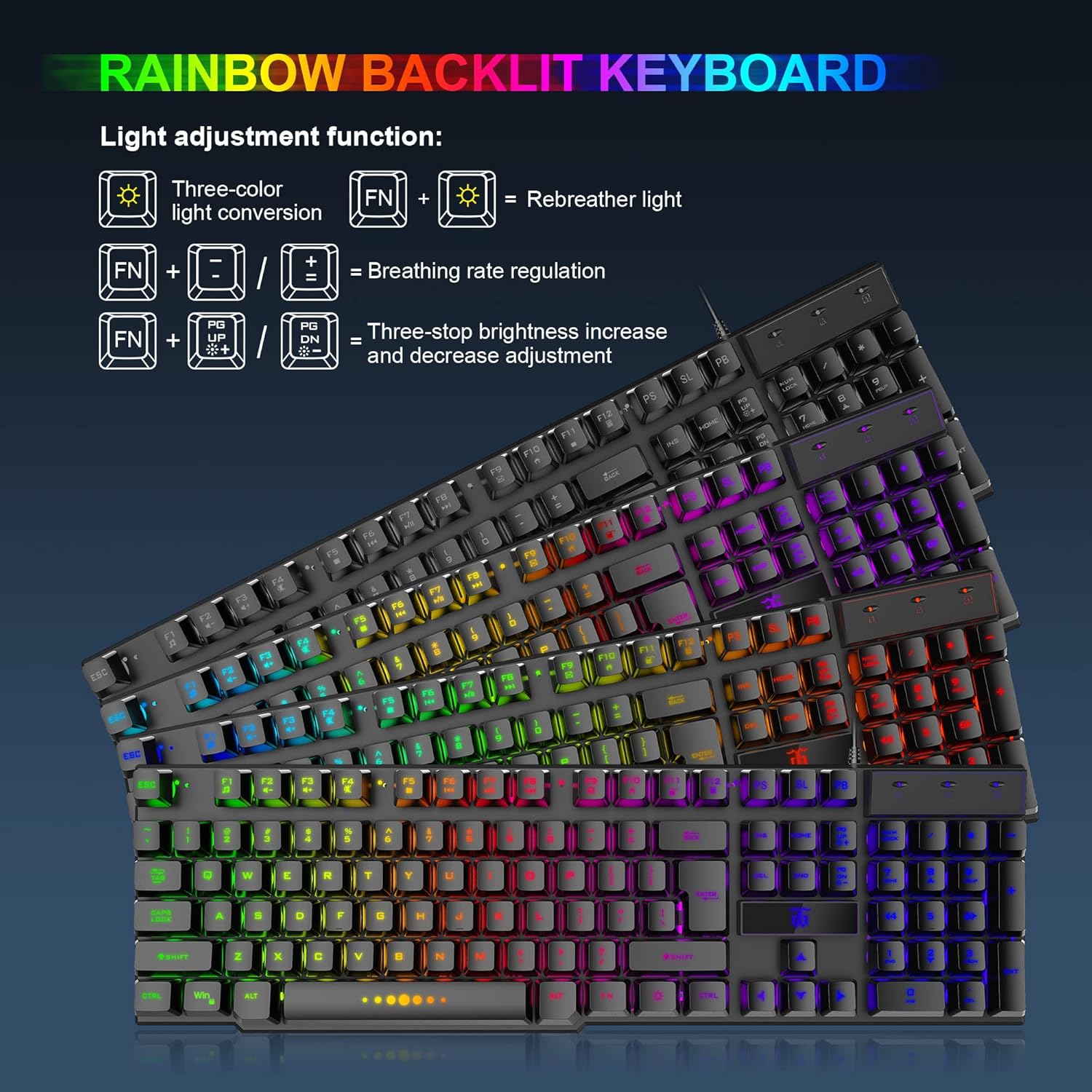 Paquete de juegos RGB: el teclado para juegos puede cambiar entre tres modos de color.