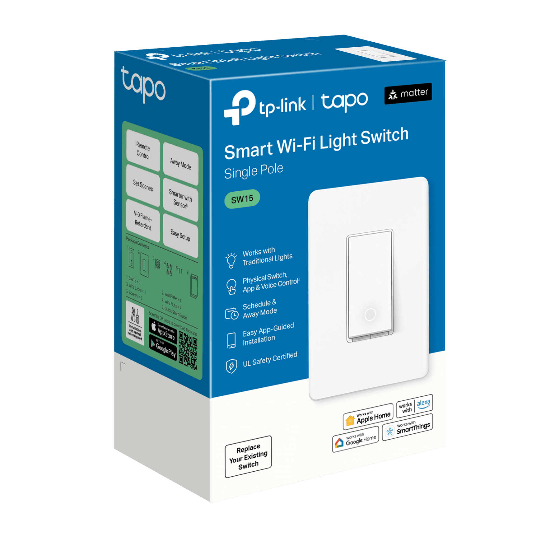 - Configuración fácil y amigable: use Bluetooth para incorporar fácilmente el interruptor inteligente con la aplicación Tapo. Configure Tapo SW15 escaneando el código incluido con cualquier aplicación compatible con Matter, como la aplicación Google Home y la aplicación Apple Home.