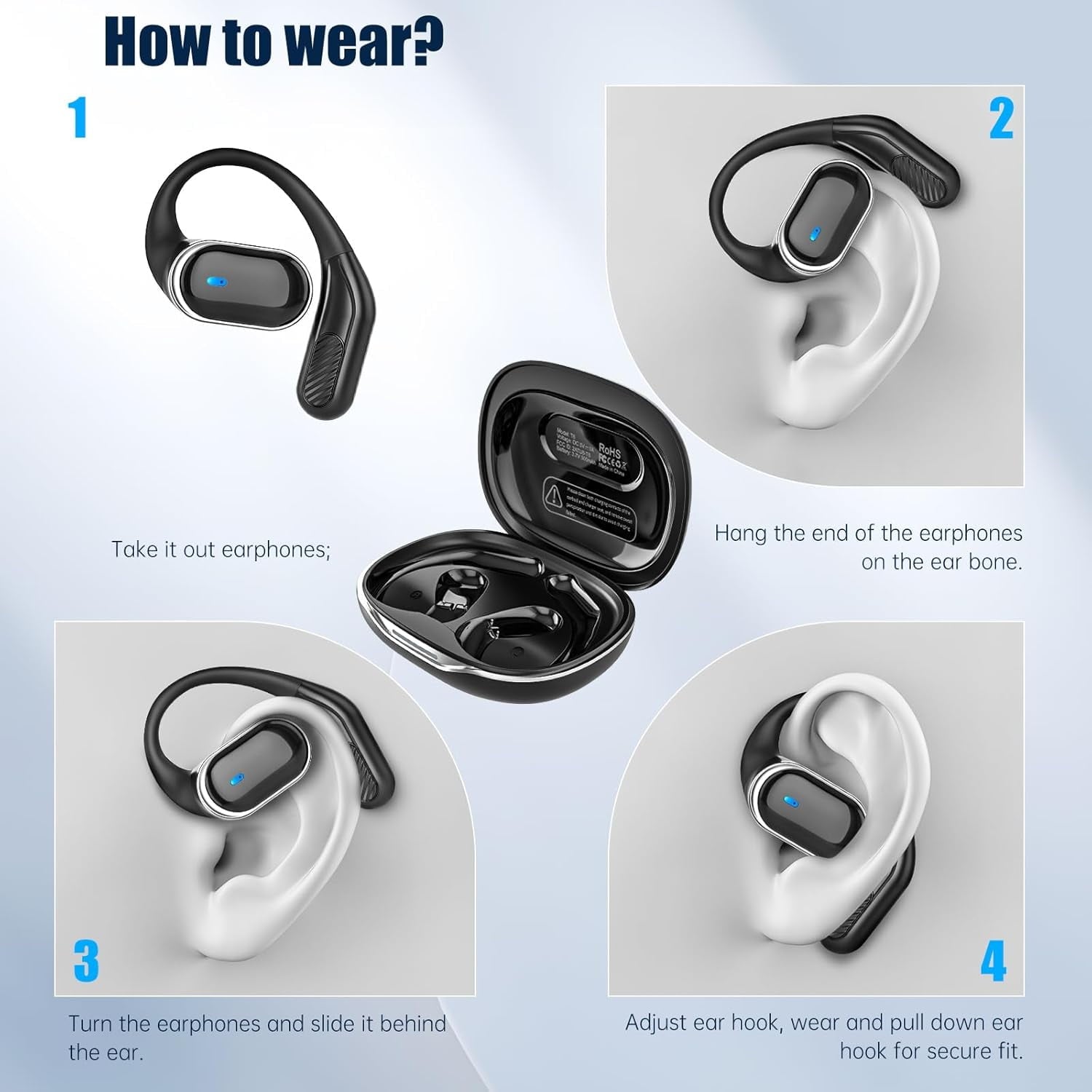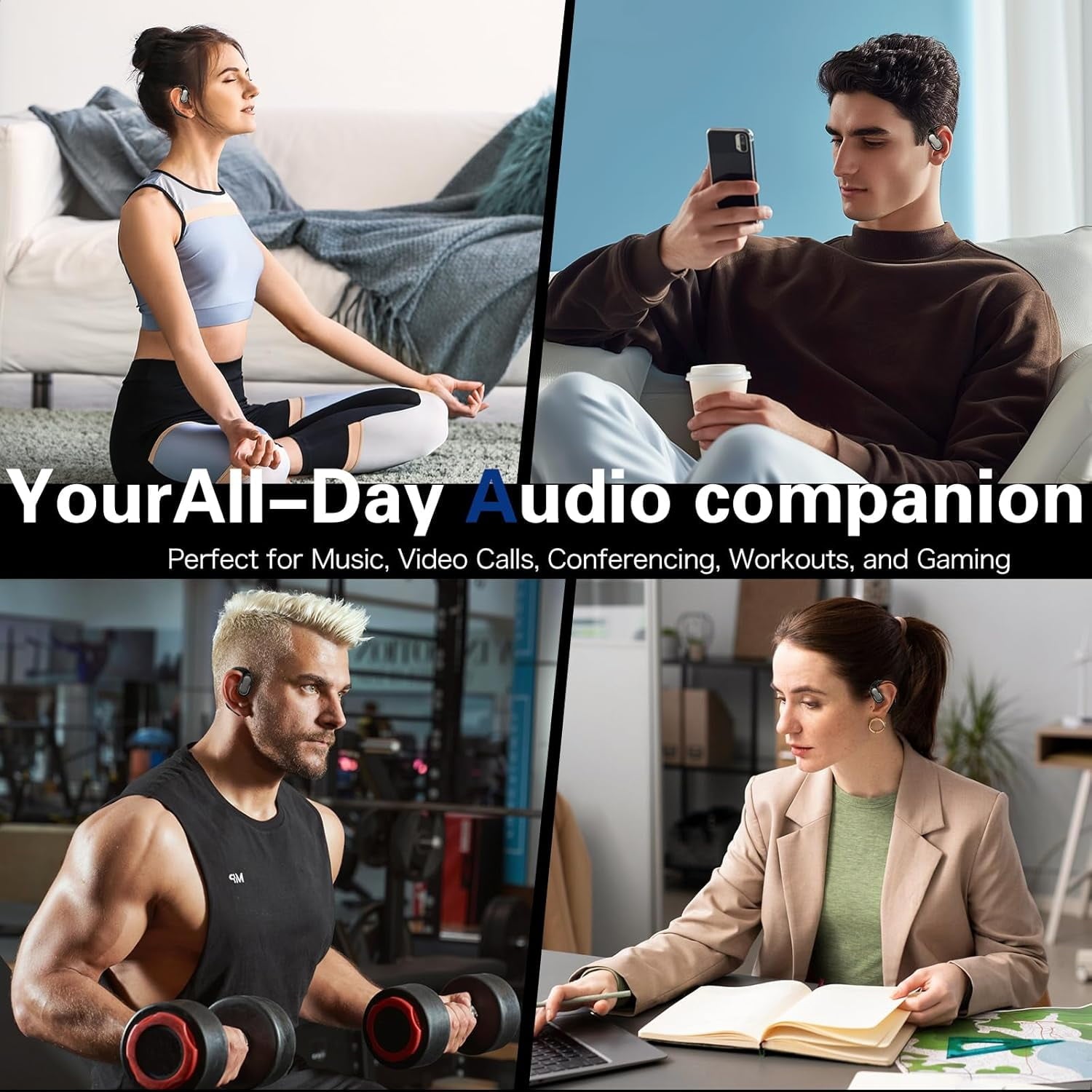 - [IPX7 a prueba de sudor y construido para moverse] Diseñados para estilos de vida activos, estos auriculares Bluetooth de oído abierto cuentan con protección a prueba de sudor IPX7 y un diseño ergonómico de permanencia. El diseño ergonómico de los ganchos para las orejas proporciona un ajuste seguro y antideslizante ideal para correr, andar en bicicleta o trabajar. Manténgase alerta y concentrado con los auriculares inalámbricos Bluetooth que se mueven con usted y soportan la actividad intensa.
