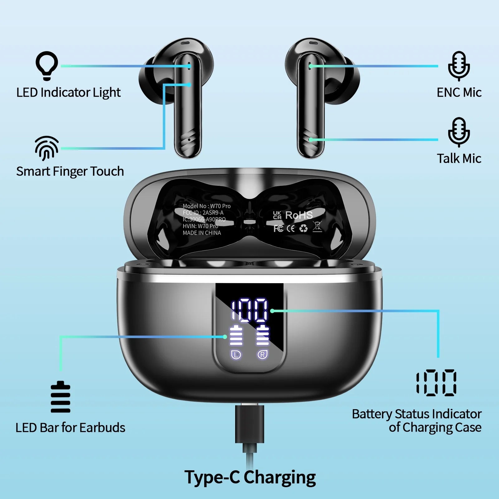 - 【38 Horas de Tiempo de Reproducción y Pantalla LED】Experimenta hasta 6-8 horas de tiempo de reproducción con una sola carga, y extiéndelo a 38 horas utilizando el estuche de carga de alta capacidad. La función de carga rápida Tipo-C solo tarda 1.5 horas, mientras que la pantalla LED dual mantiene un seguimiento de la vida útil de la batería y el estado de carga sin esfuerzo.