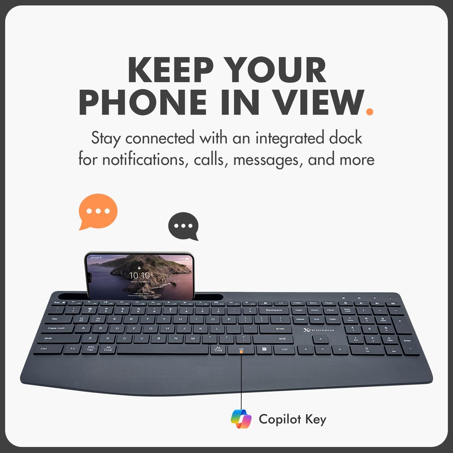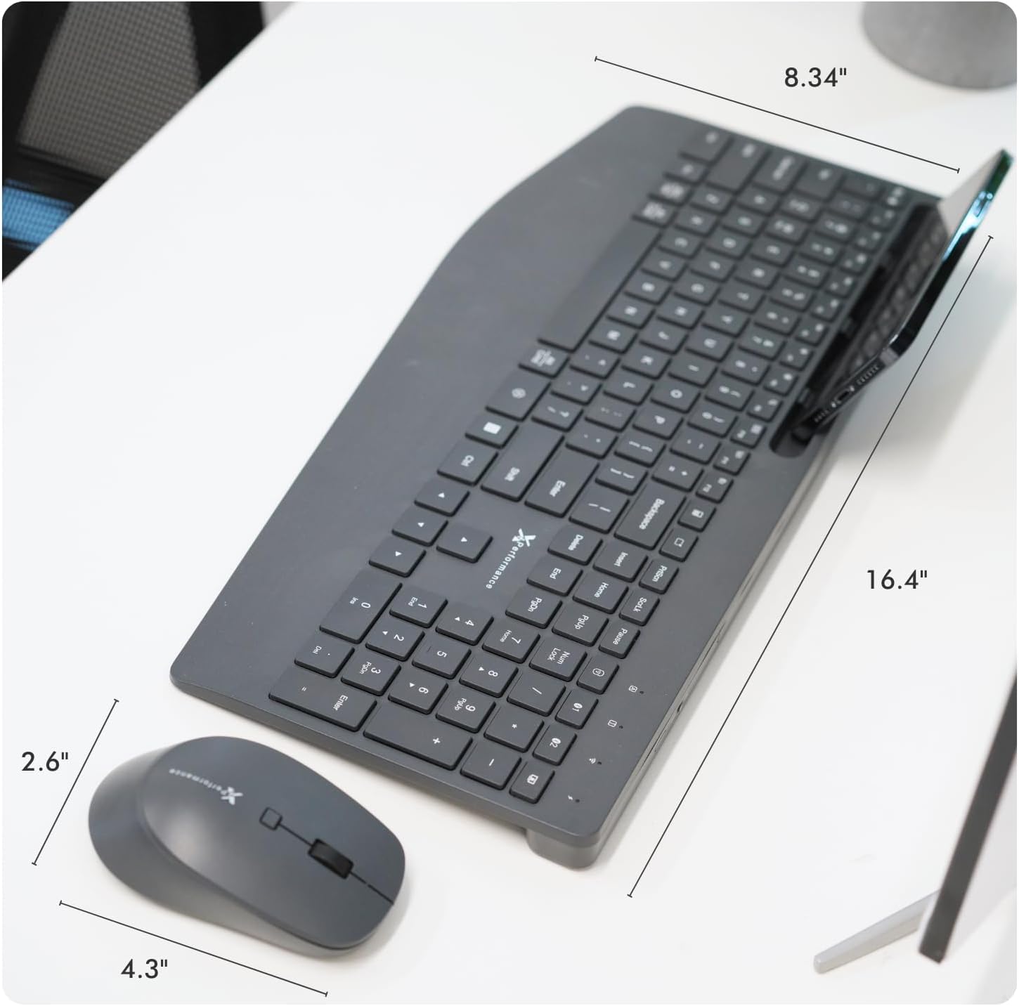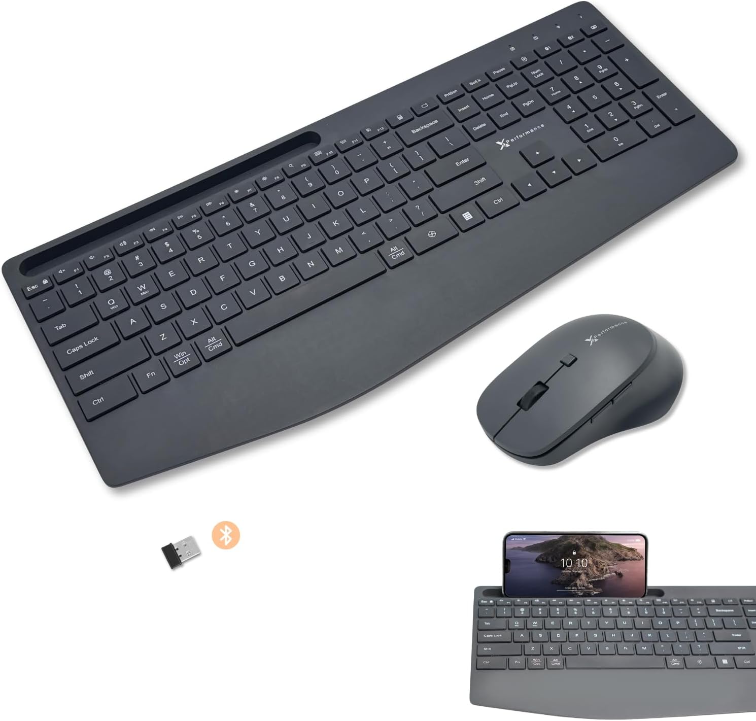 X9 Performance Combo ergonómico de teclado y mouse inalámbricos, Bluetooth + 2.4G, multisincronización, base para teléfono, reposamuñecas, teclas silenciosas, combo de mouse y teclado inalámbrico