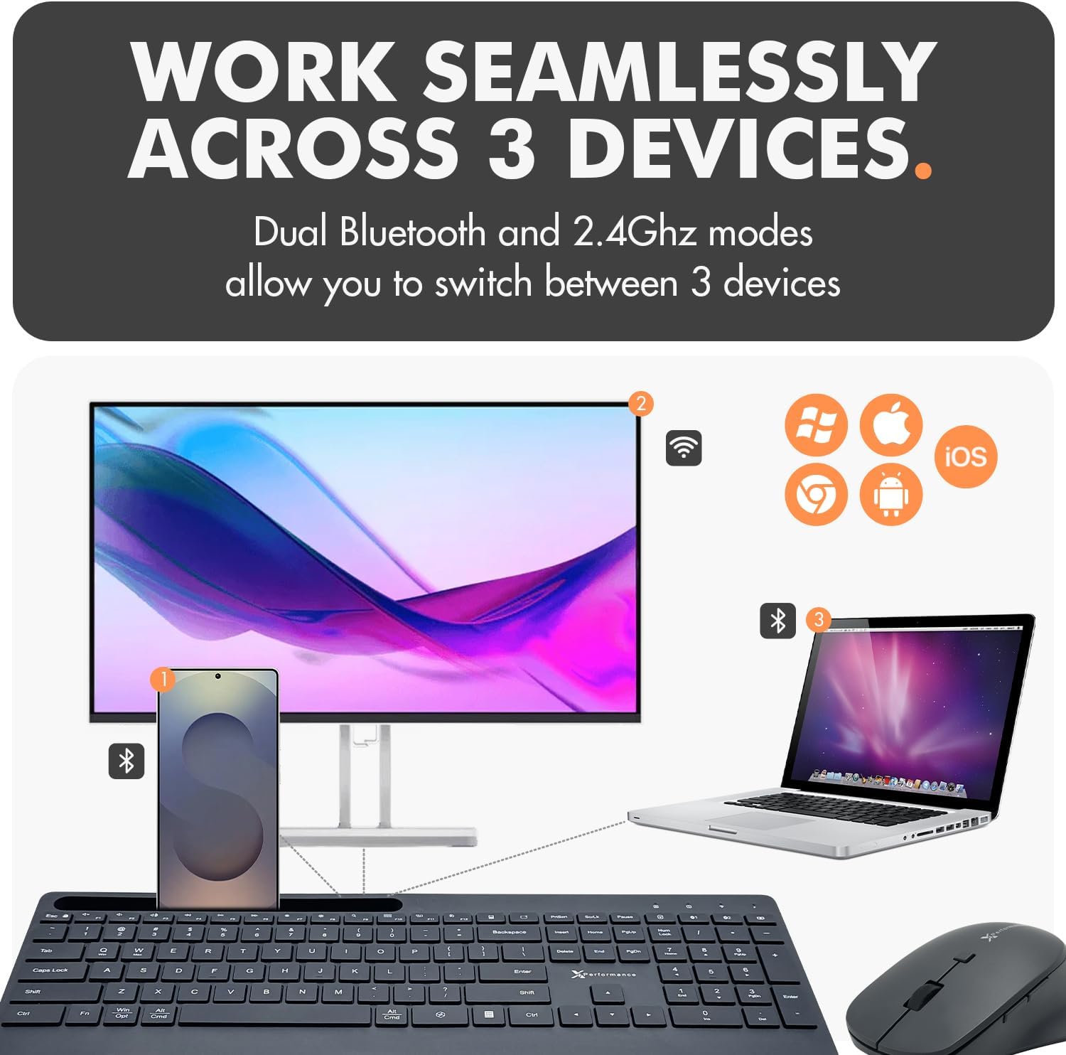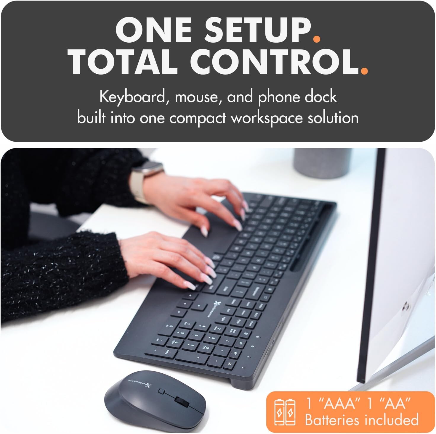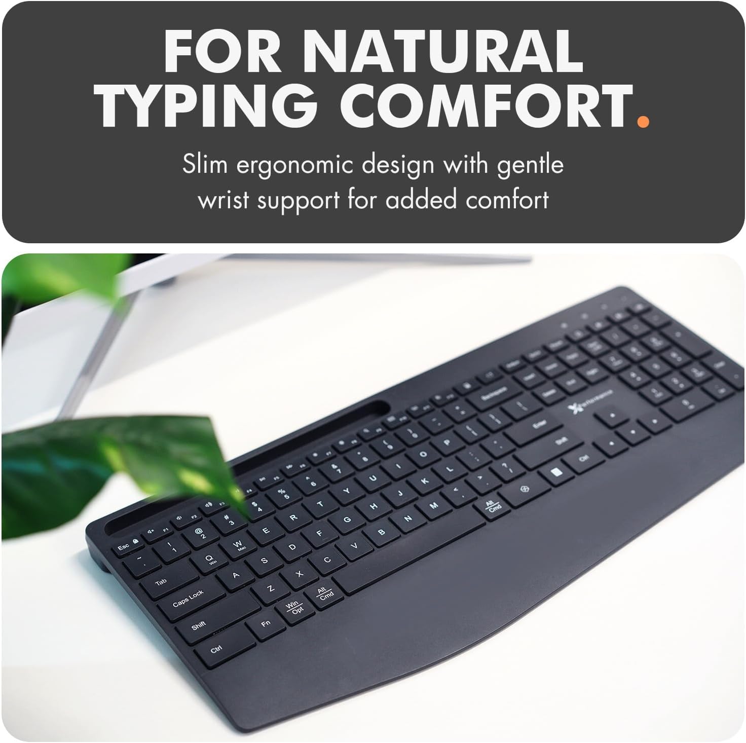X9 Performance Combo ergonómico de teclado y mouse inalámbricos, Bluetooth + 2.4G, multisincronización, base para teléfono, reposamuñecas, teclas silenciosas, combo de mouse y teclado inalámbrico