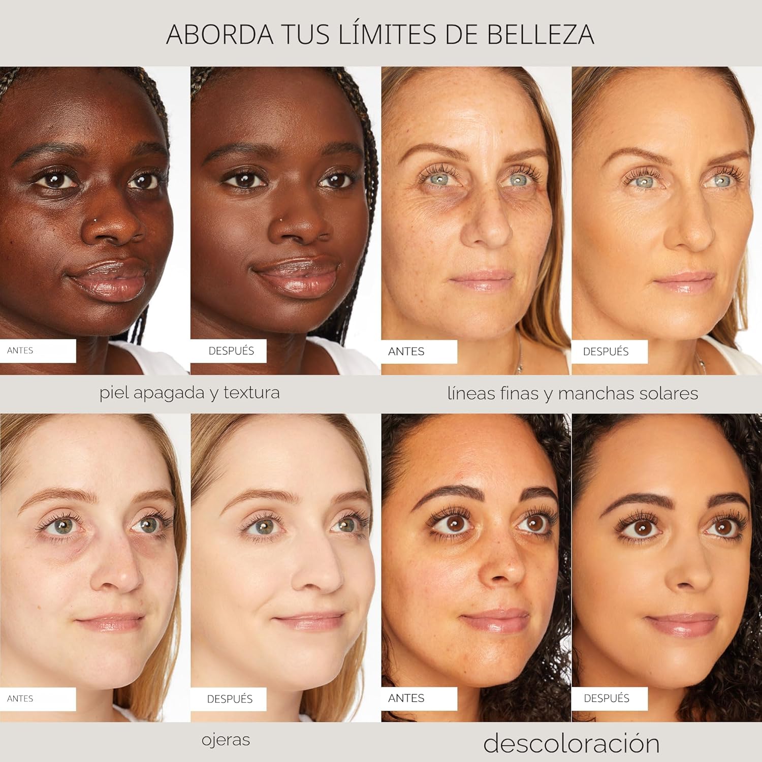 hizo que pareciera que yo tener una piel excelente, naturalmente, hizo que mi piel se vea más suave, no se ve pegajosa *basado en un estudio clínico y de panel de consumidores de 30 sujetos