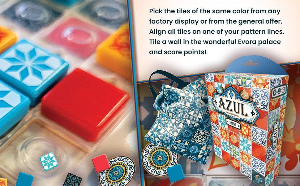 En esta versión mini, los jugadores compiten para lograr la puntuación más alta reclamando estratégicamente azulejos y organizándolos en sus tablas.